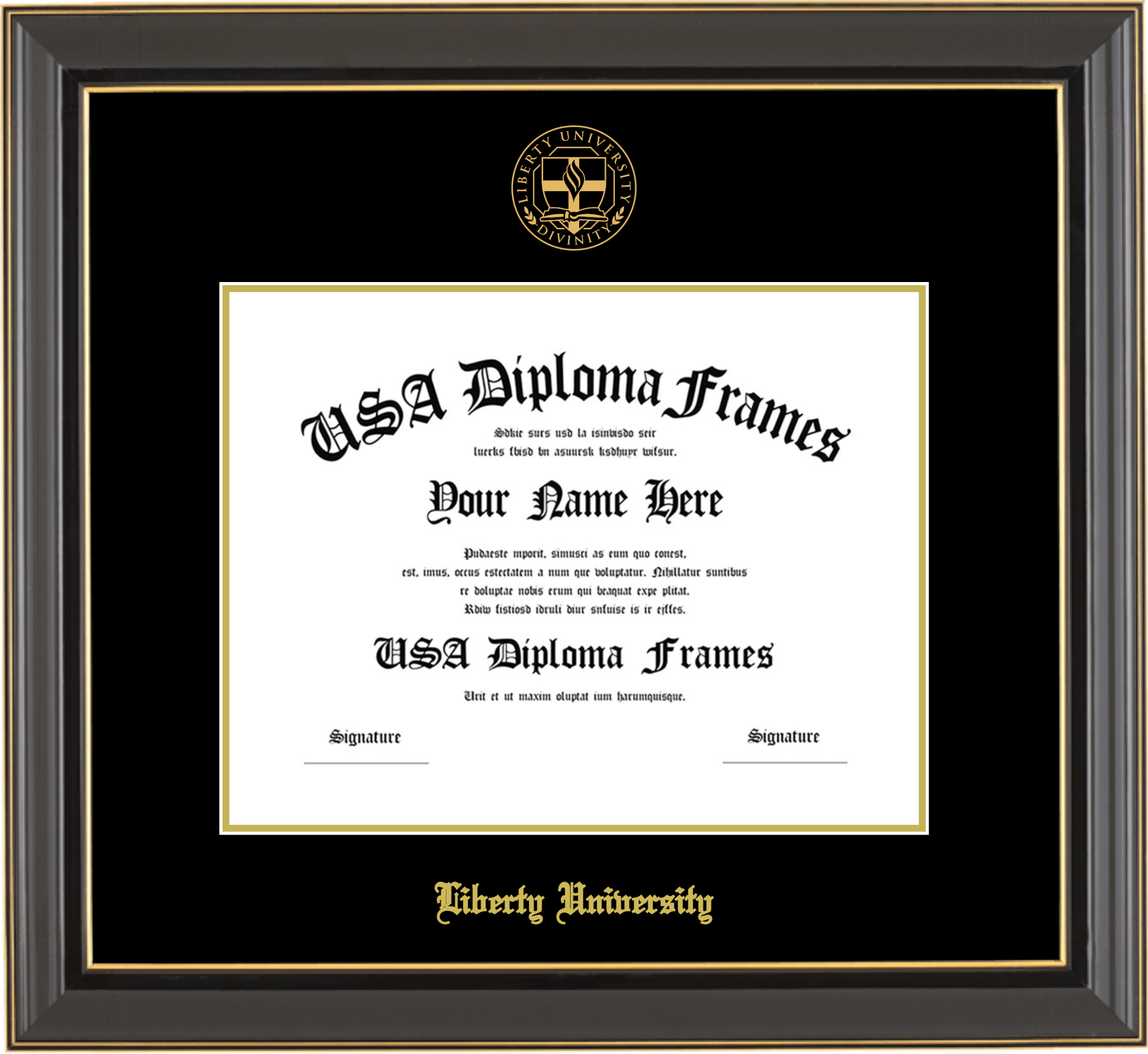 Liberty University Diploma Frame – Bachelors 8.5×11 – Black Gold Trim Glossy – Black and Gold Mat