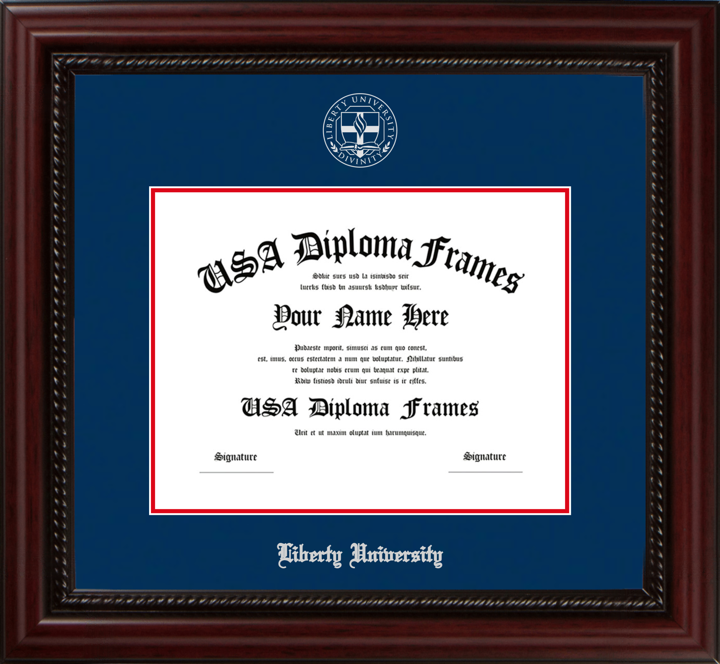 Liberty University Diploma Frame – Bachelors 8.5×11 – Executive Cherry Rope – Navy and Red Mat – Silver Seal