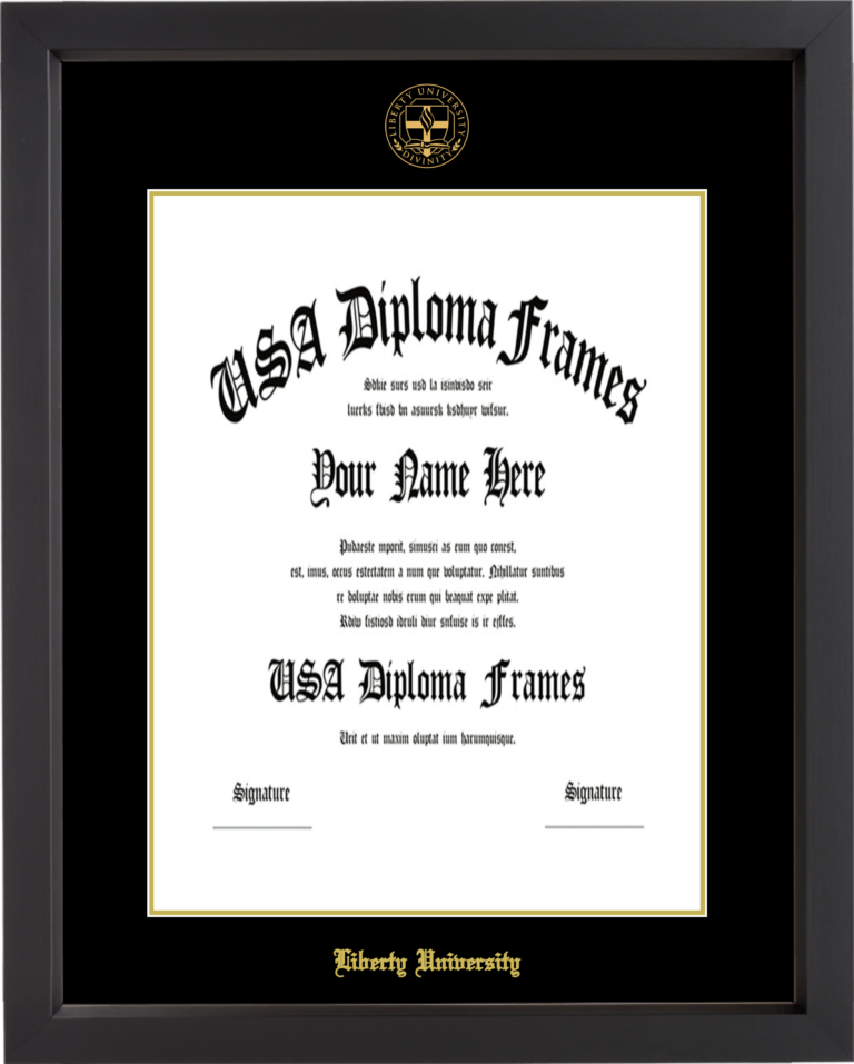 Liberty University Diploma Frame – Masters 17 x 13 – Black Matte – Black and Gold Mat