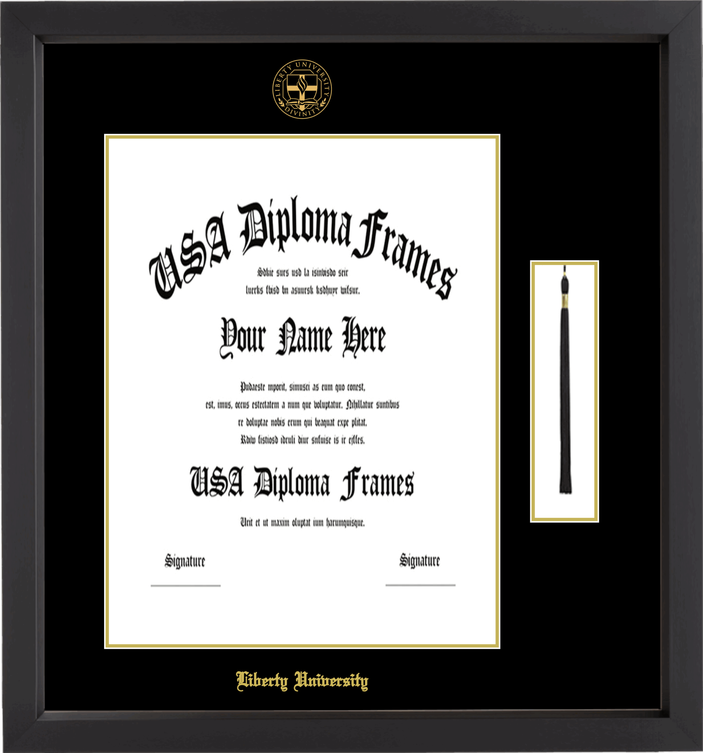Liberty University Diploma Frame – Masters 17 x 13 – Black Matte – Black and Gold Mat – Tassel Opening