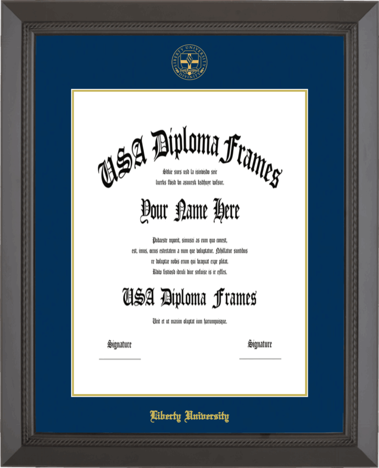 Liberty University Diploma Frame – Masters – 17 x 13 -Black Rope – Navy and Gold Mat