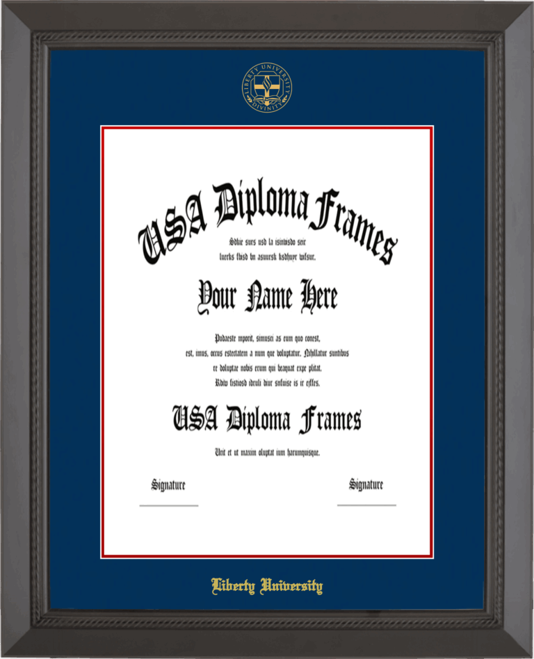 Liberty University Diploma Frame – Masters 17 x 13 – Black Rope – Navy and Red Mat