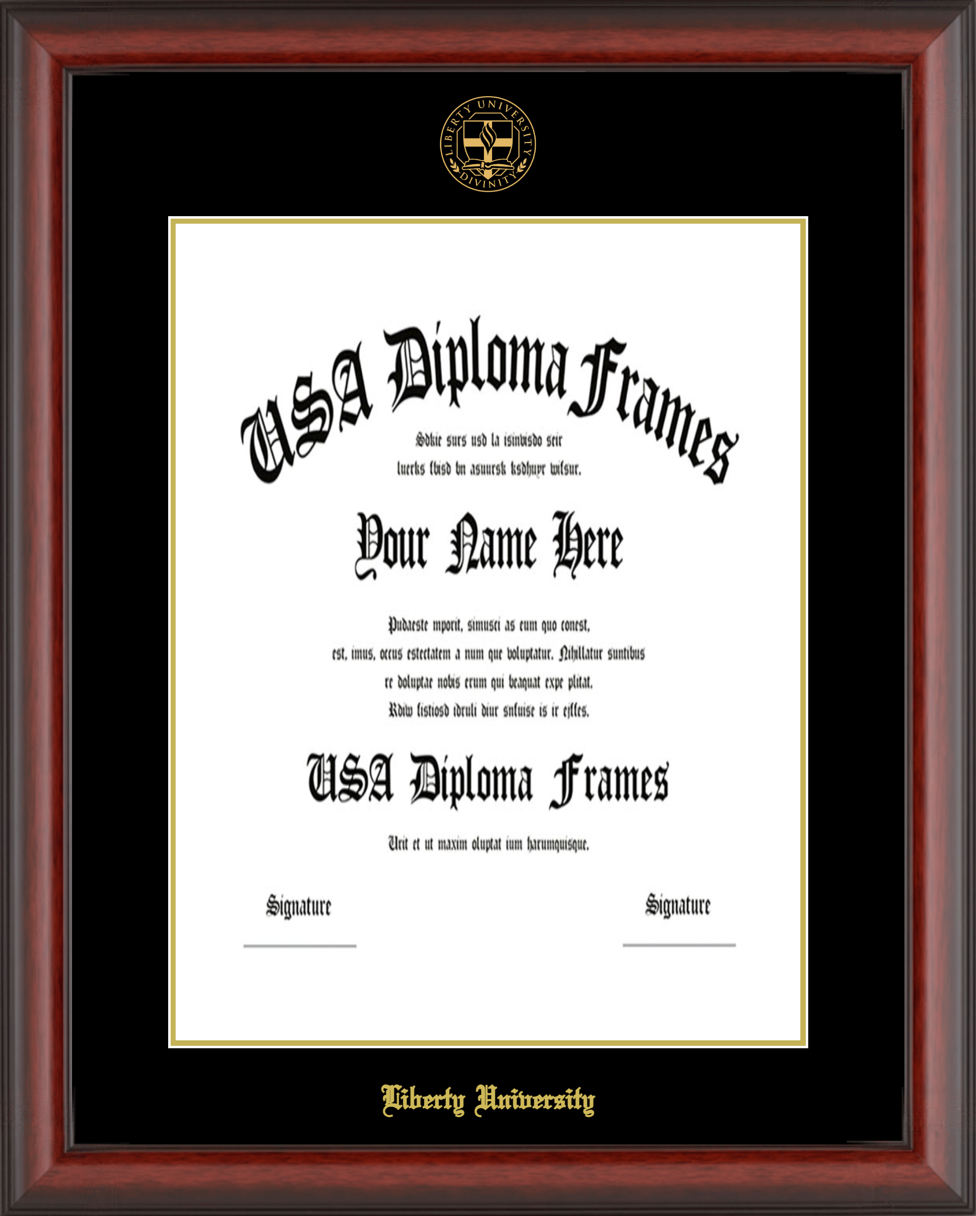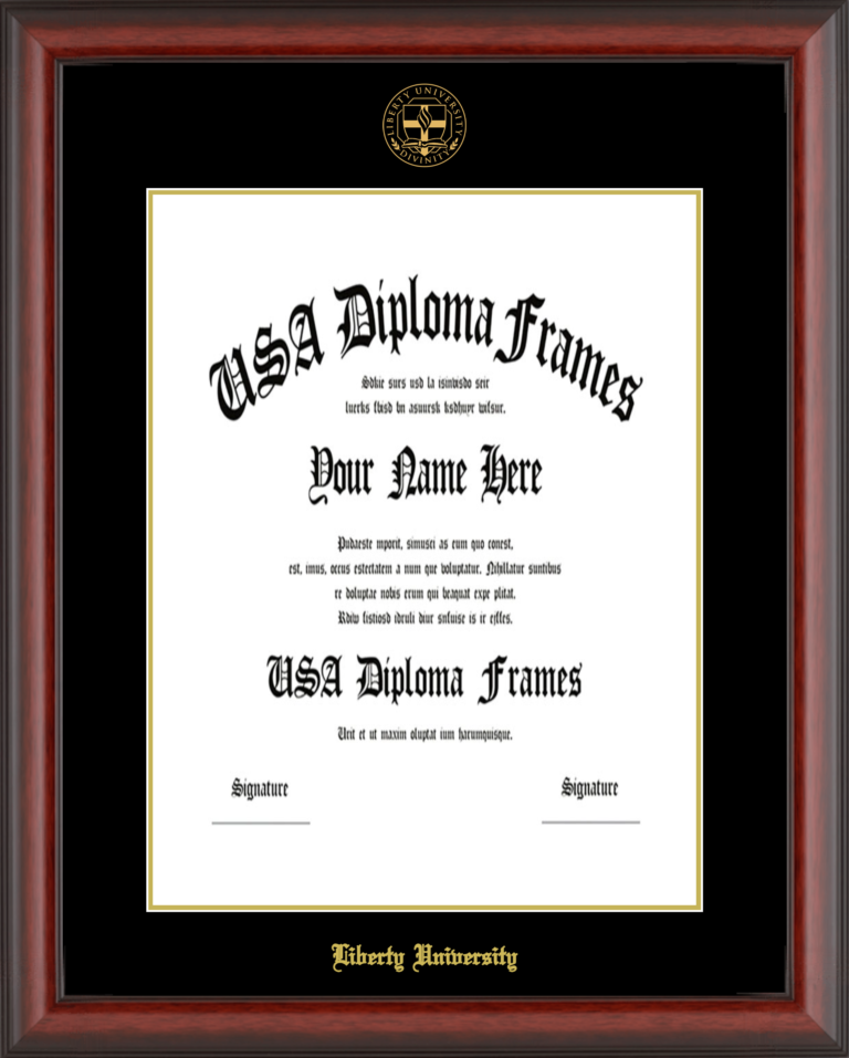 Liberty University Diploma Frame – Masters 17 x 13 – Cherry Mahogany Matte – Black and Gold Mat