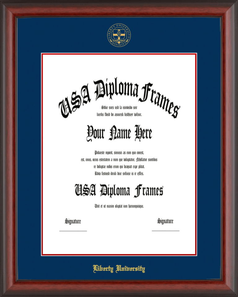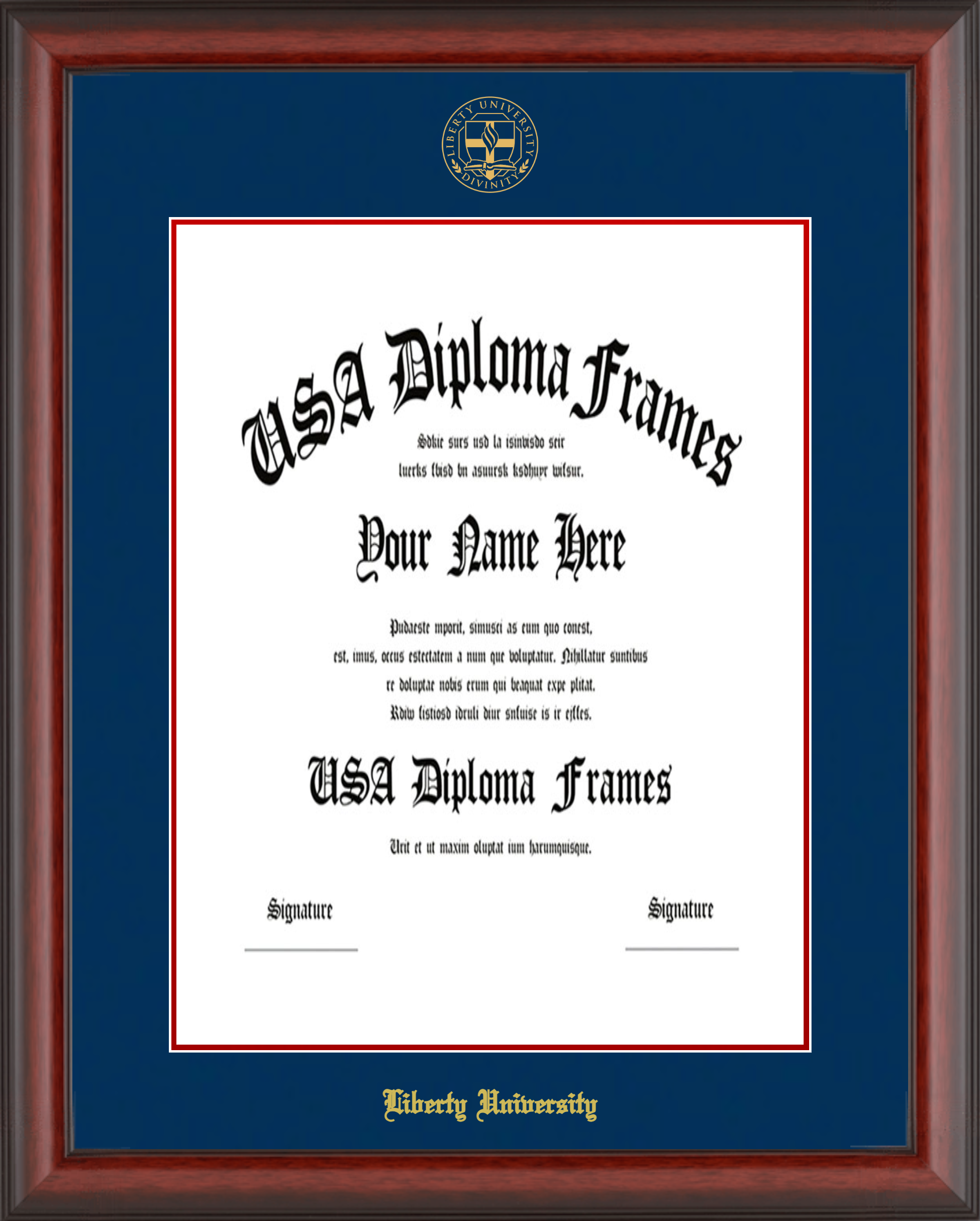 Liberty University Diploma Frame – Masters 17 x 13 – Cherry Mahogany Matte – Navy and Red Mat