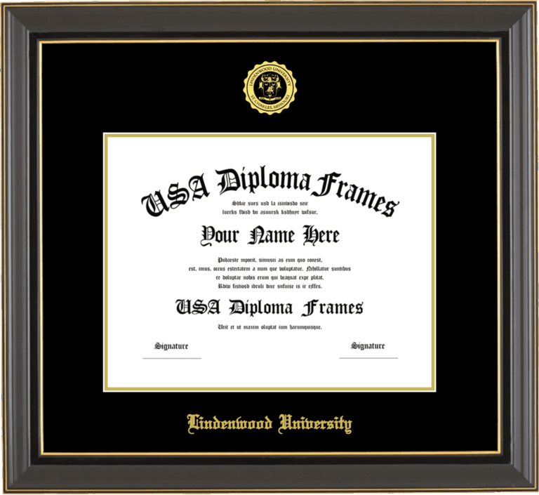 Lindenwood University Diploma Frame – Black Gold Trim Glossy – Black and Gold Mat