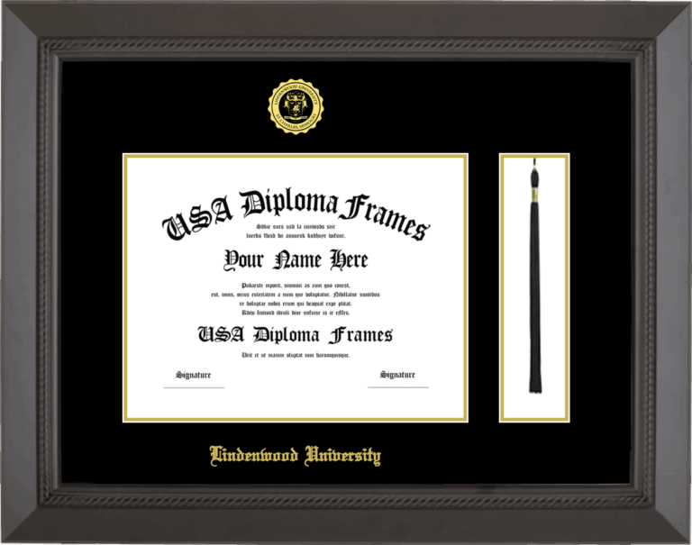 Lindenwood University Diploma Frame with Tassel – Black Rope – Black and Gold Mat