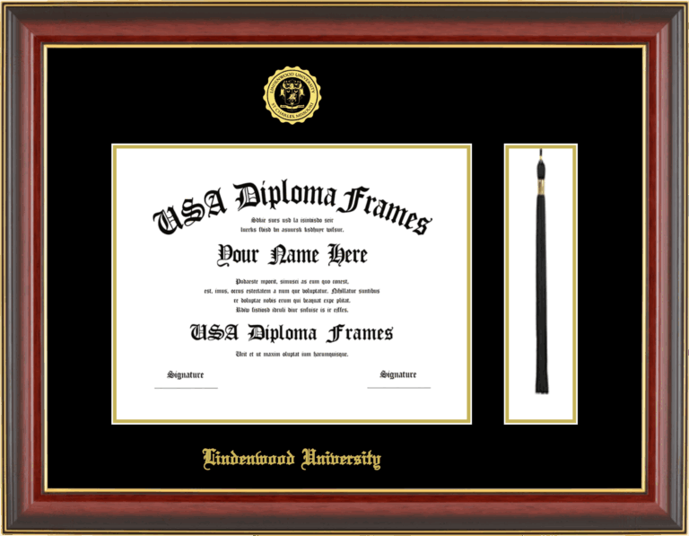 Lindenwood University Diploma Frame with Tassel – Cherry Mahogany Gold Trim Glossy – Black and Gold Mat