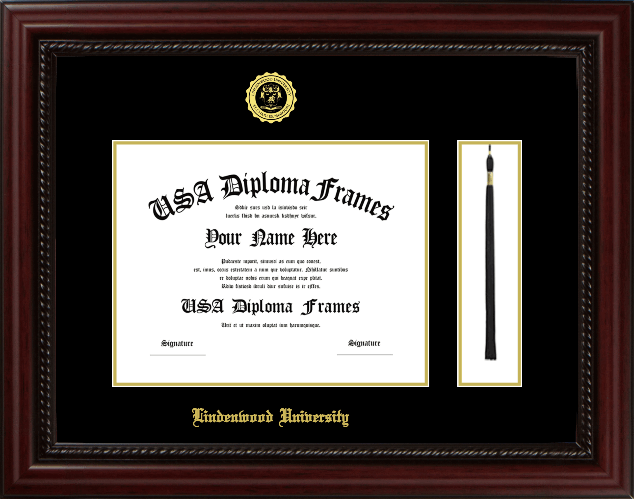 Lindenwood University Diploma Frame with Tassel – Executive Cherry Rope – Black and Gold Mat