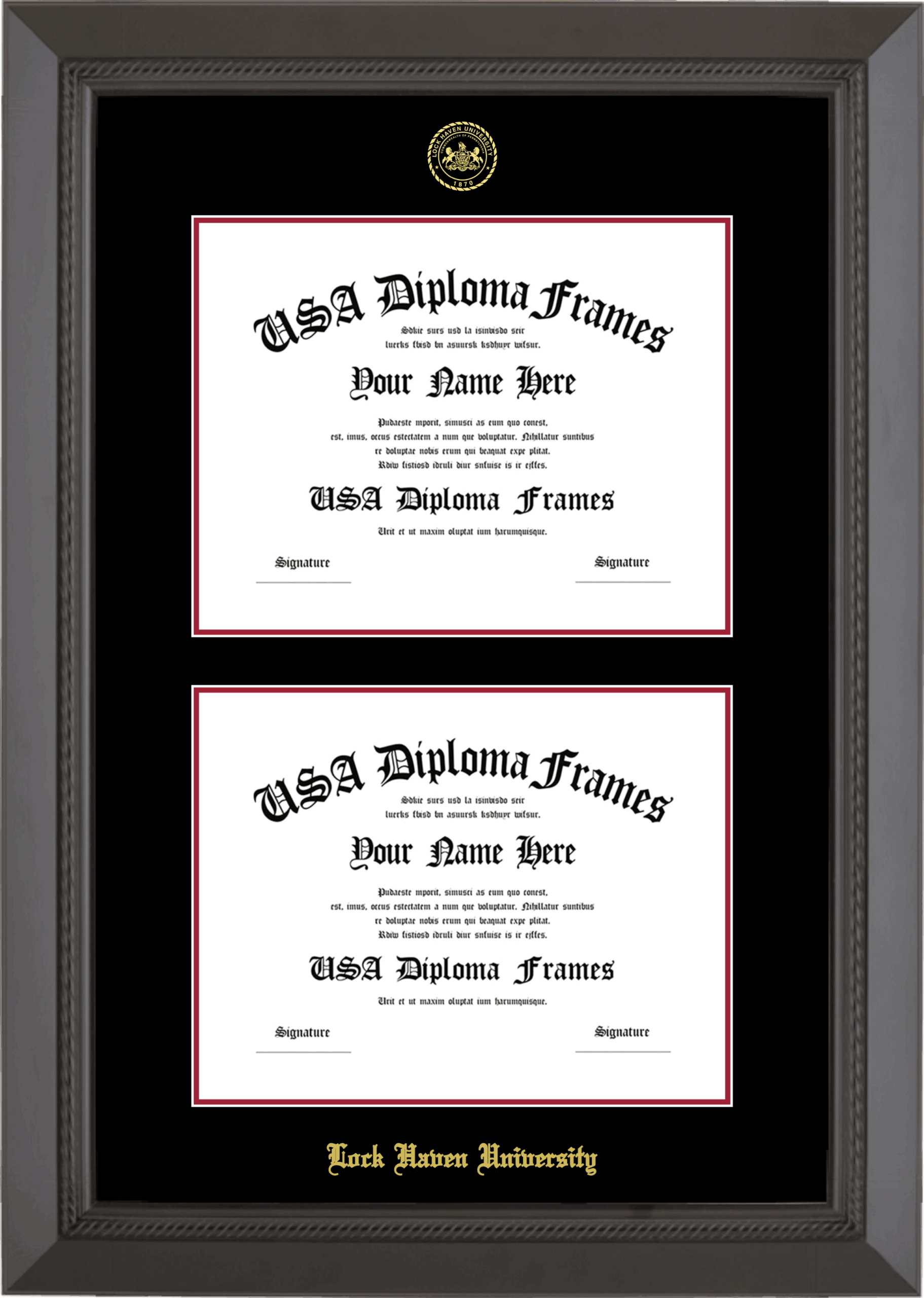 Lock Haven University of Pennsylvania Double Diploma Frame – Double Document – Black Rope – Black and Crimson Mat