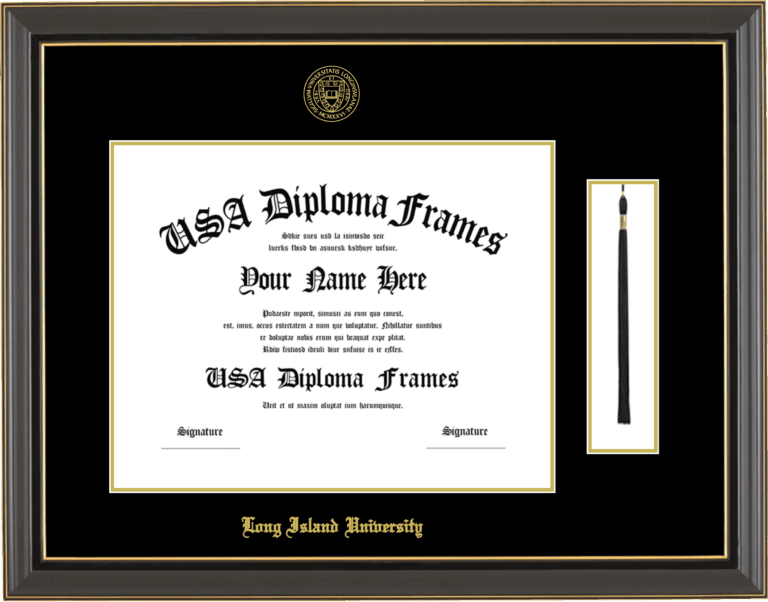 Long Island University Diploma Frame with Tassel – Black Gold Trim Glossy – Black and Gold Mat