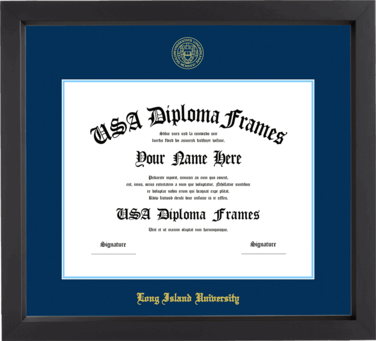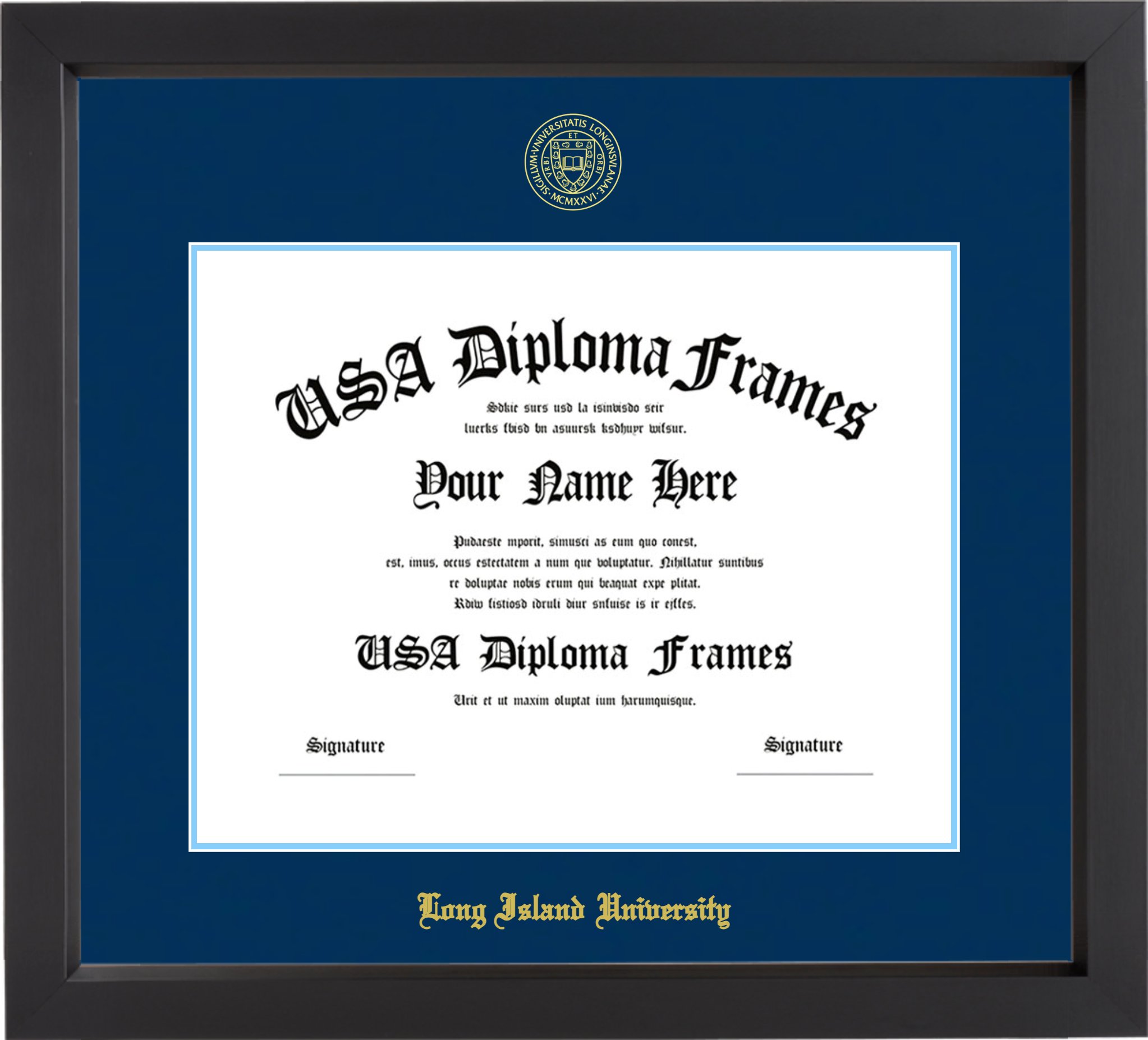 Long Island University Diploma Frame – Black Matte – Navy and Light Blue Mat