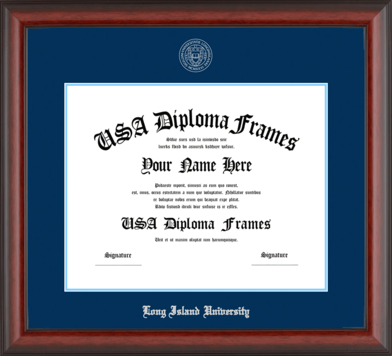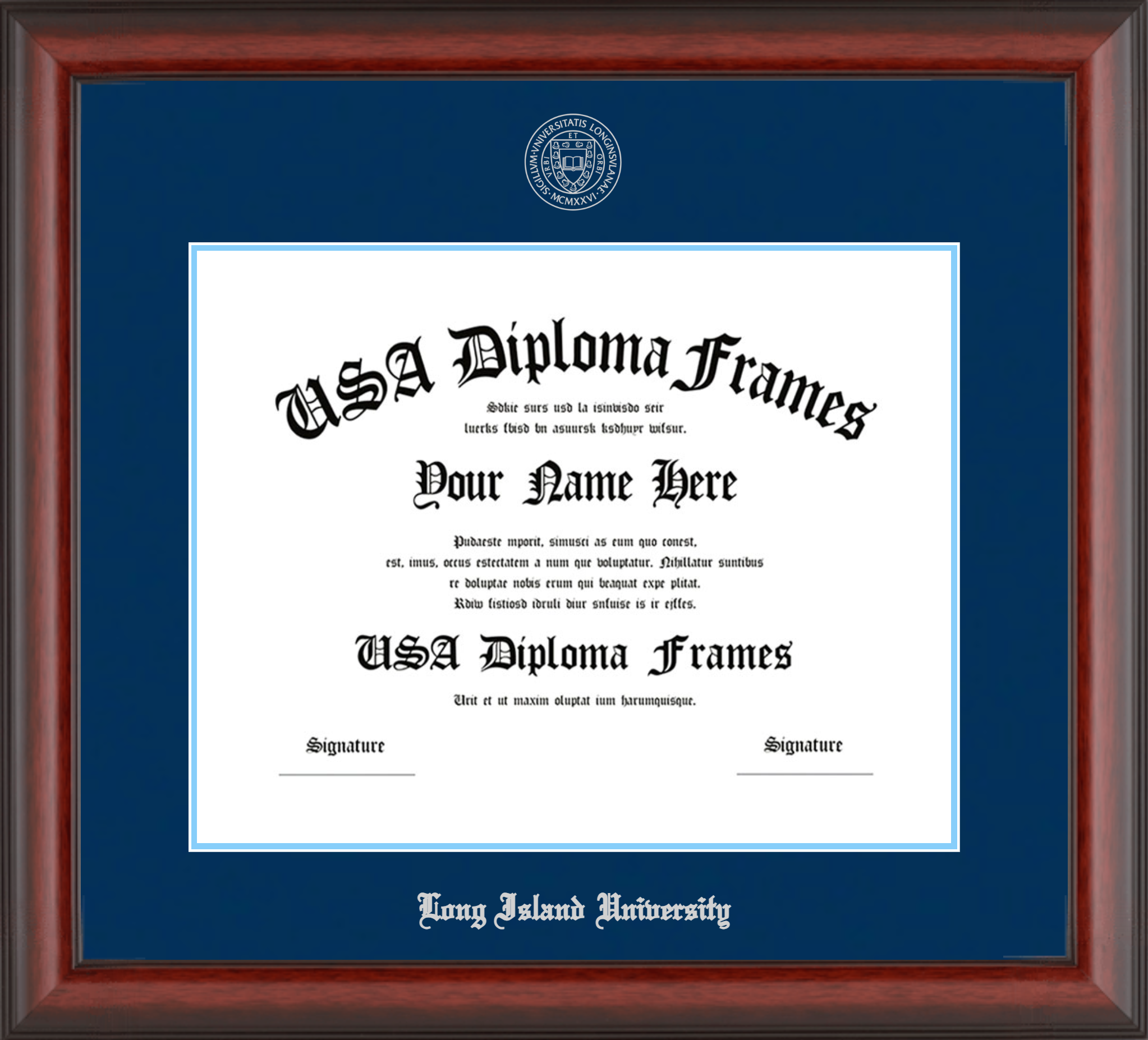 Long Island University Diploma Frame – Cherry Mahogany Matte – Navy and Light Blue Mat
