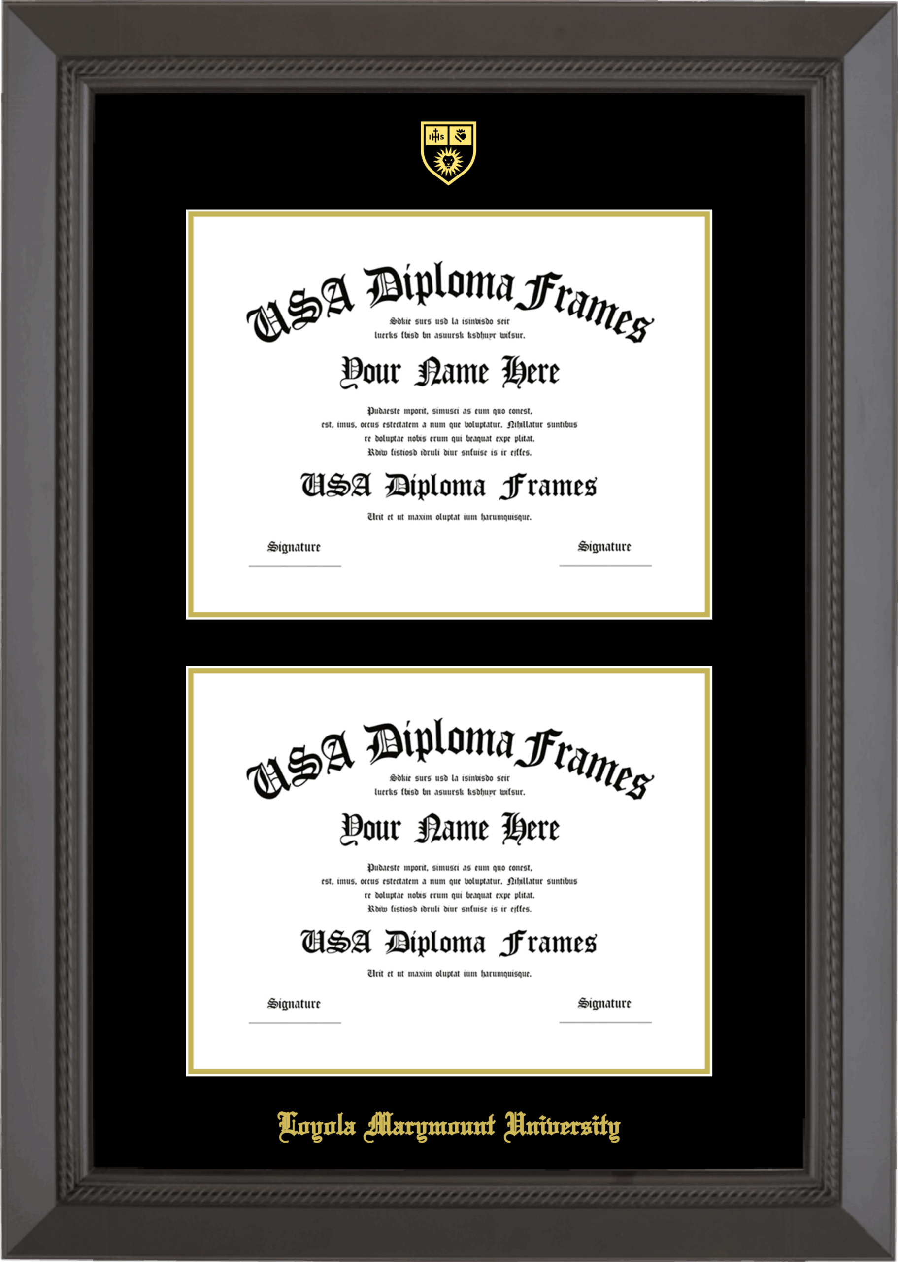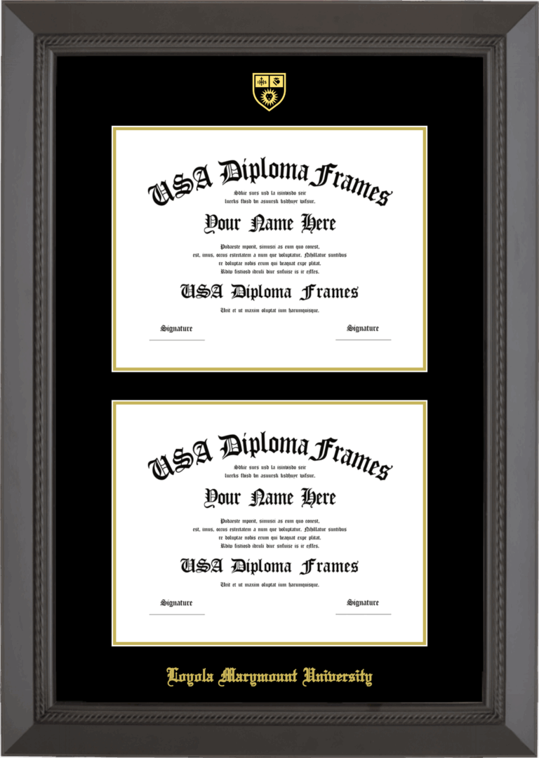 Loyola Marymount University Double Diploma Frame – Double Document – Black Rope – Black and Gold Mat
