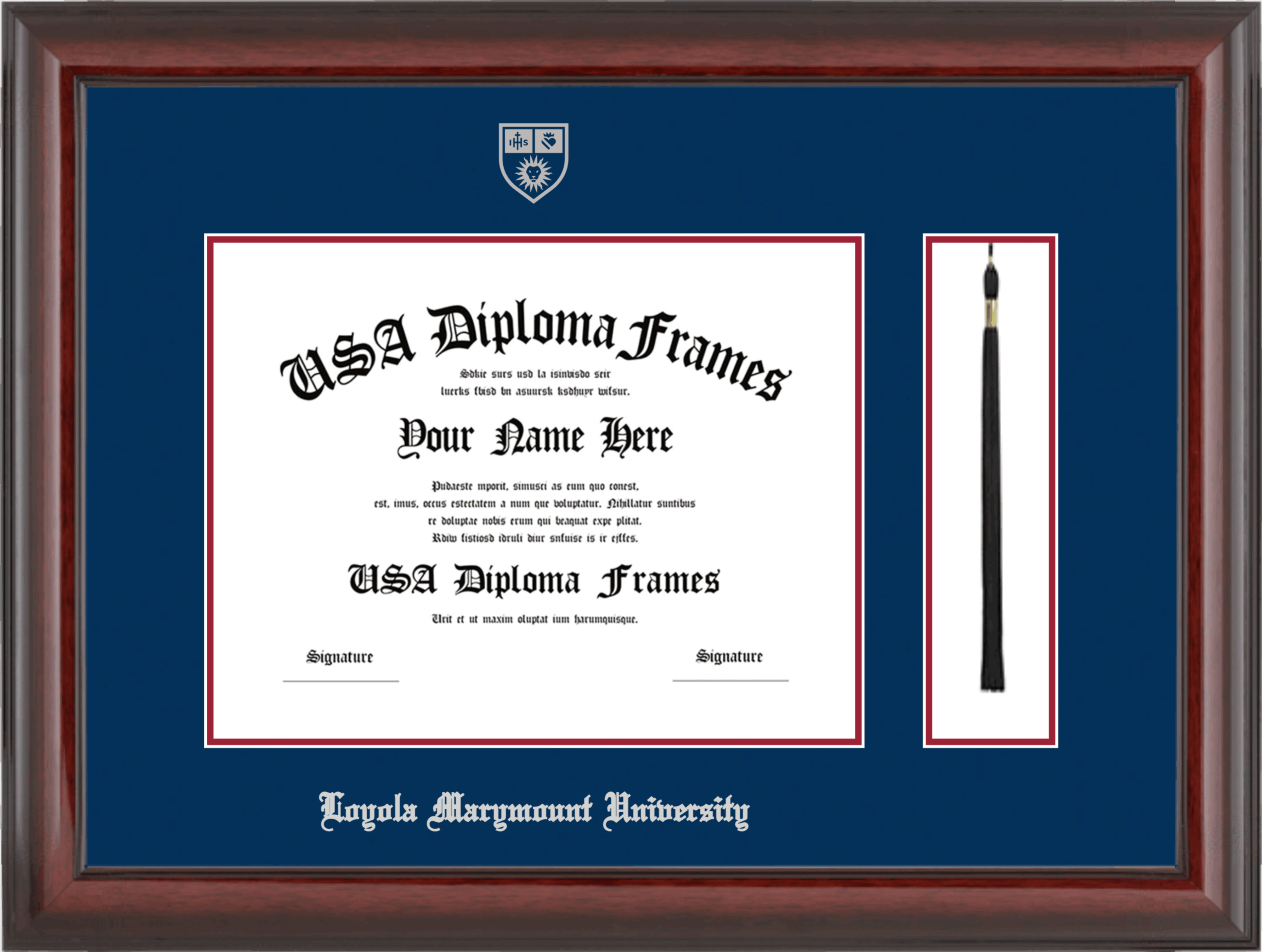 Loyola Marymount University Diploma Frame with Tassel – Cherry Mahogany Glossy – Navy and Crimson Mat – Silver Seal