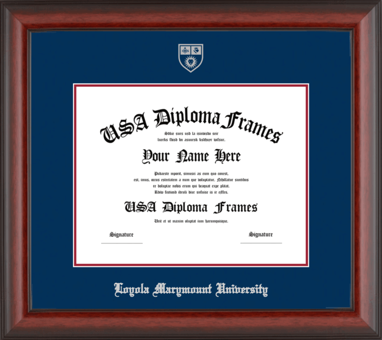 Want to explore more styles? Browse our full range of diploma frame layouts, or visit the Loyola Marymount University to view options available for your school. Looking for a fully personalized design? Try our custom Frame Builder and create a frame that’s uniquely yours.