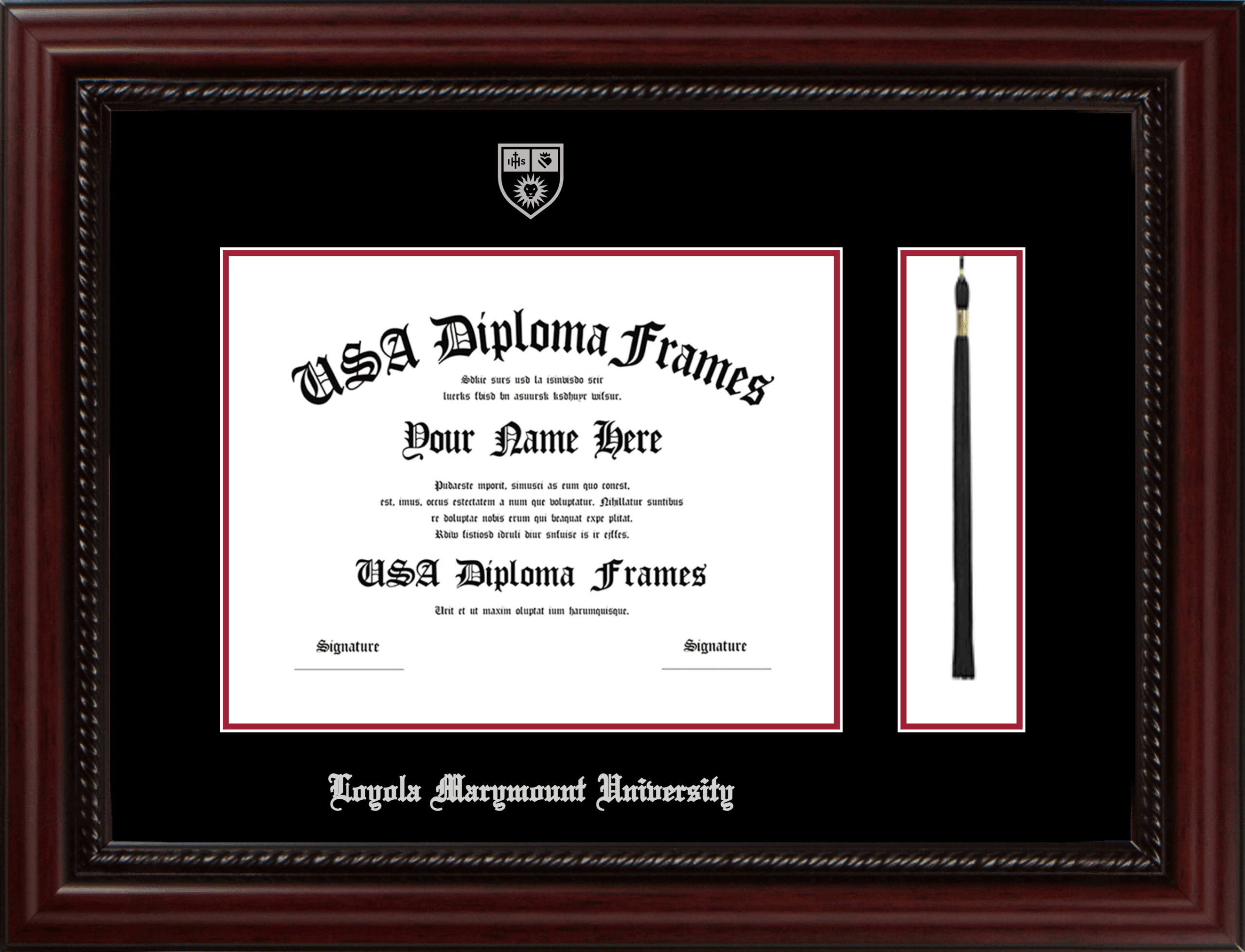 Loyola Marymount University Diploma Frame with Tassel – Executive Cherry Rope – Black and Crimson Mat – Silver Seal
