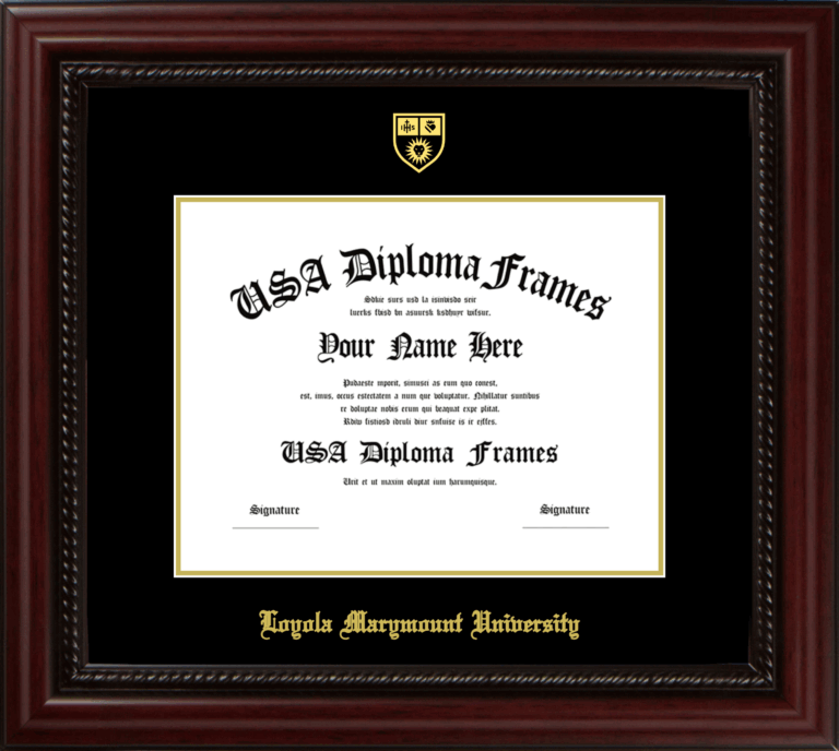Loyola Marymount University Diploma Frame – Executive Cherry Rope – Black and Gold Mat