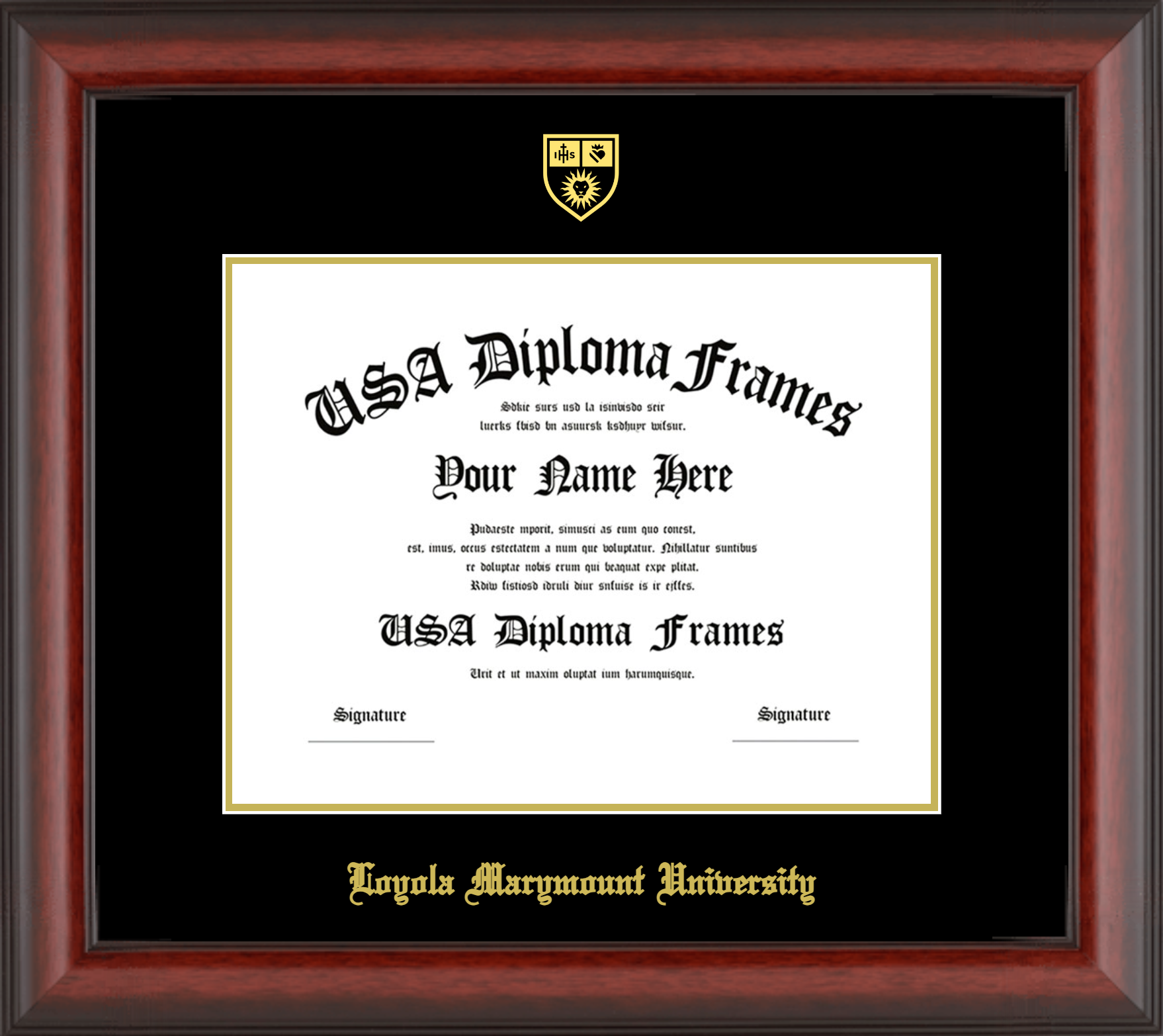 Loyola Marymount University Diploma Frame – Cherry Mahogany Matte – Black and Gold Mat