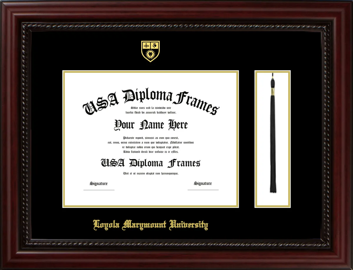 Loyola Marymount University Diploma Frame with Tassel – Executive Cherry Rope – Black and Gold mat