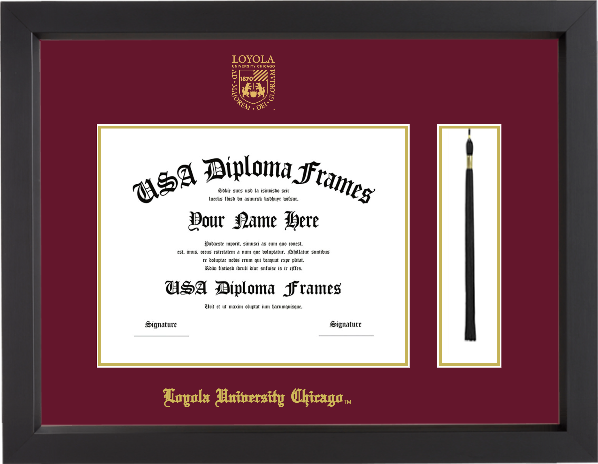 Loyola University Chicago Diploma Frame with Tassel – Black Matte – Maroon and Gold Mat