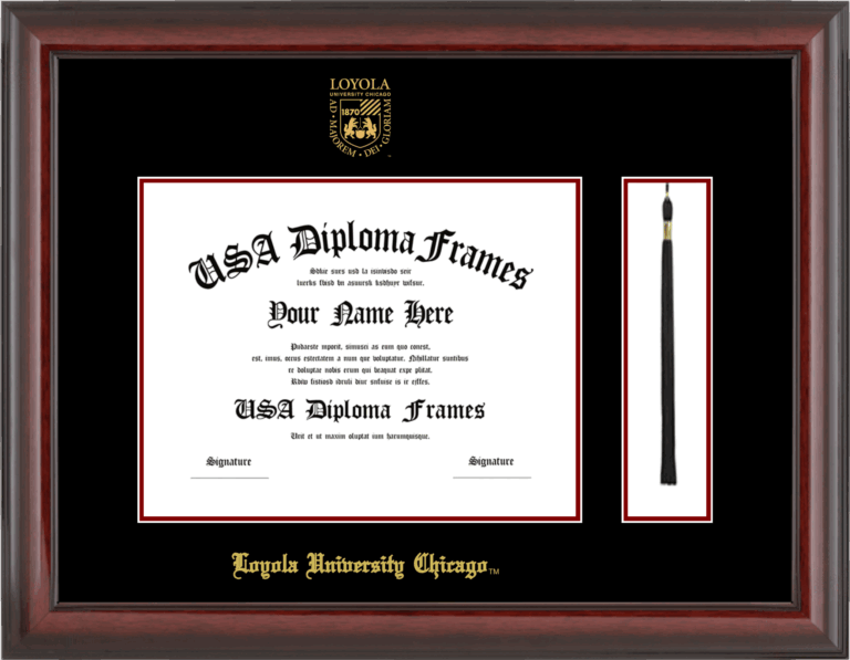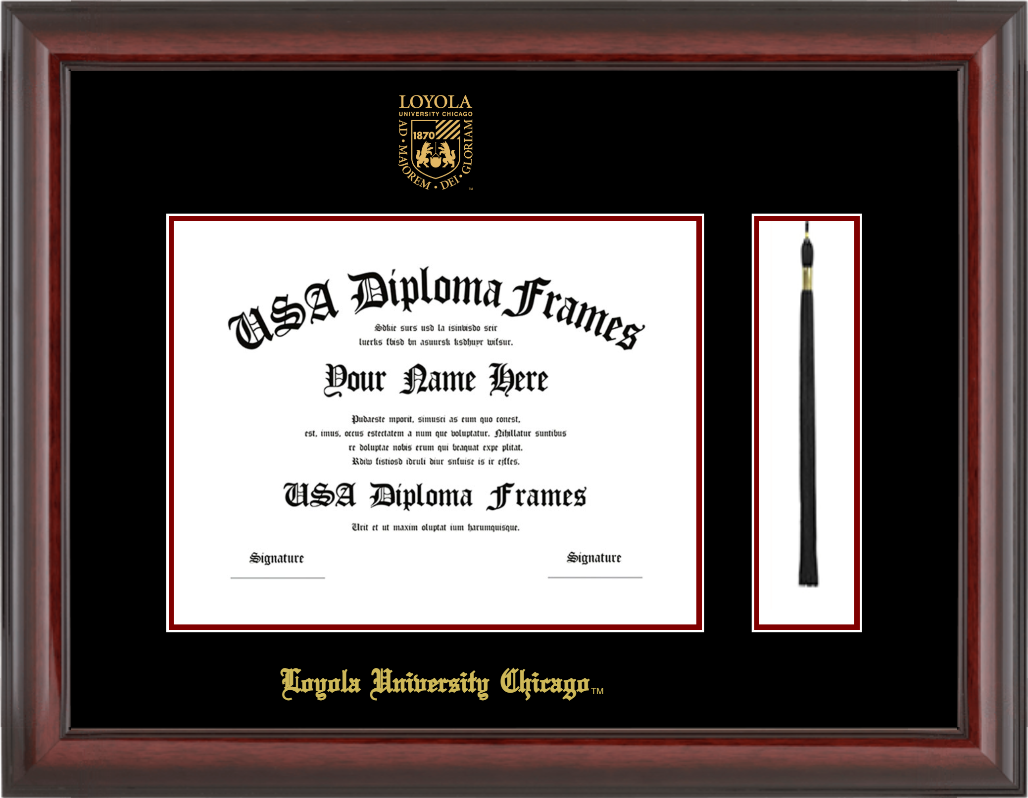 Loyola University Chicago Diploma Frame with Tassel – Cherry Mahogany Glossy – Black and Maroon Mat
