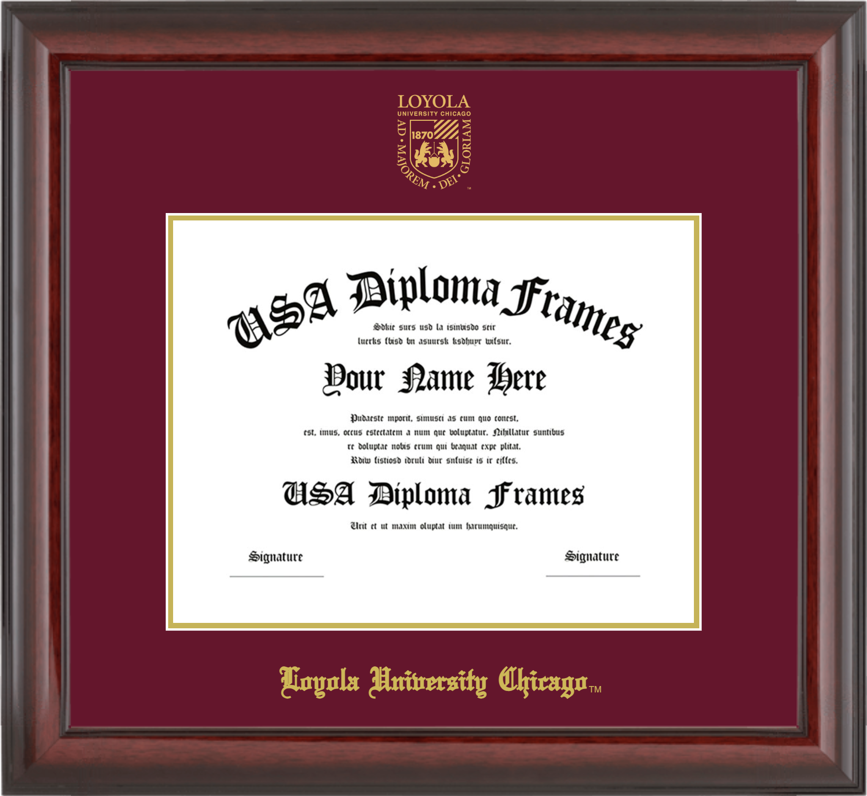 Loyola University Chicago – Single Horizontal Document ( Diploma ) – Cherry Mahogany Glossy – Maroon Mat – Gold Accent Mat – With Seal(University Seal Gold) – With Gold Embossing (Loyola University Chicago)
