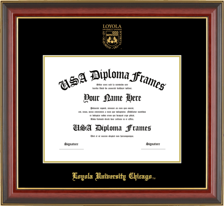 Loyola University Chicago Diploma Frame – Cherry Mahogany Gold Trim Glossy – Black and Gold Mat