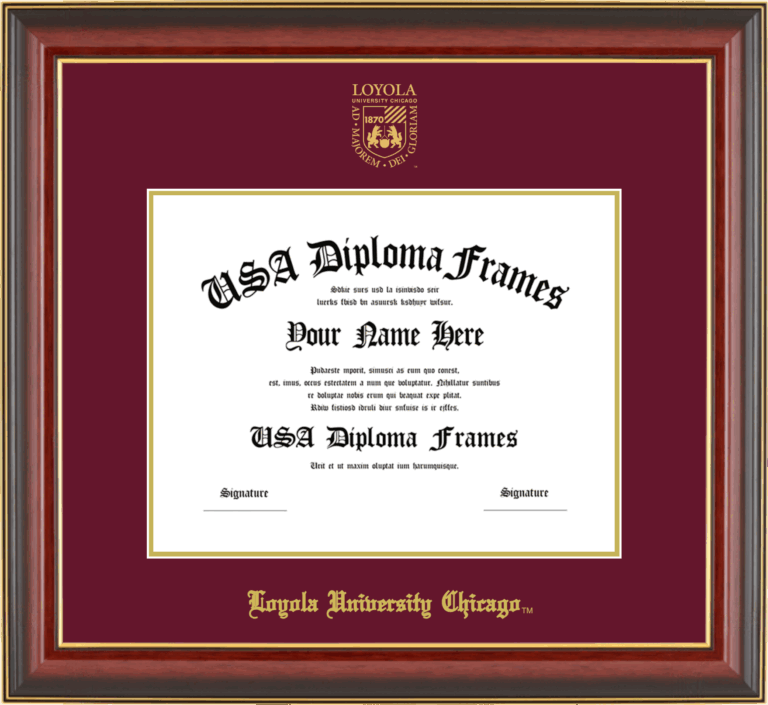 Loyola University Chicago Diploma Frame – Cherry Mahogany Gold Trim Glossy – Maroon and Gold Mat
