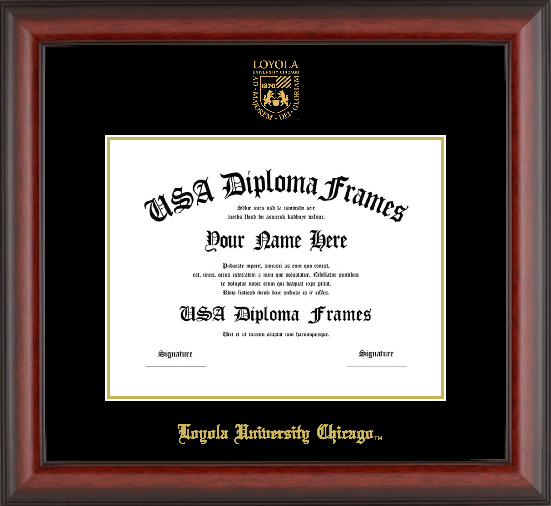 Loyola University Chicago Diploma Frame – Cherry Mahogany Matte – Black and Gold Mat