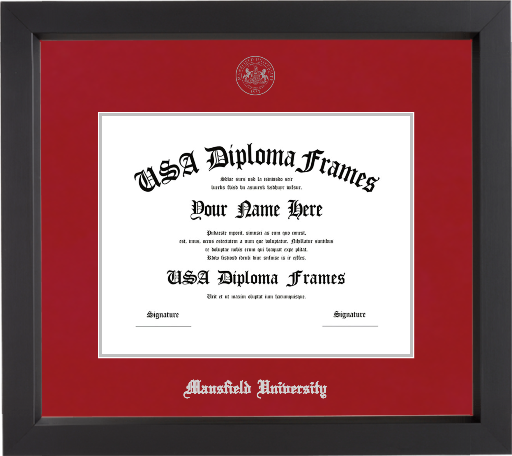 Mansfield University – Single Horizontal Document ( Diploma ) – Black Matte – Crimson Mat – Silver Accent Mat – With Seal(University Seal Silver) – With Silver Embossing (Mansfield University)