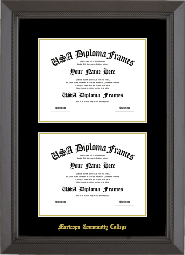 Maricopa Community College Double Diploma Frame – Double Document – Black Rope – Black and Gold Mat