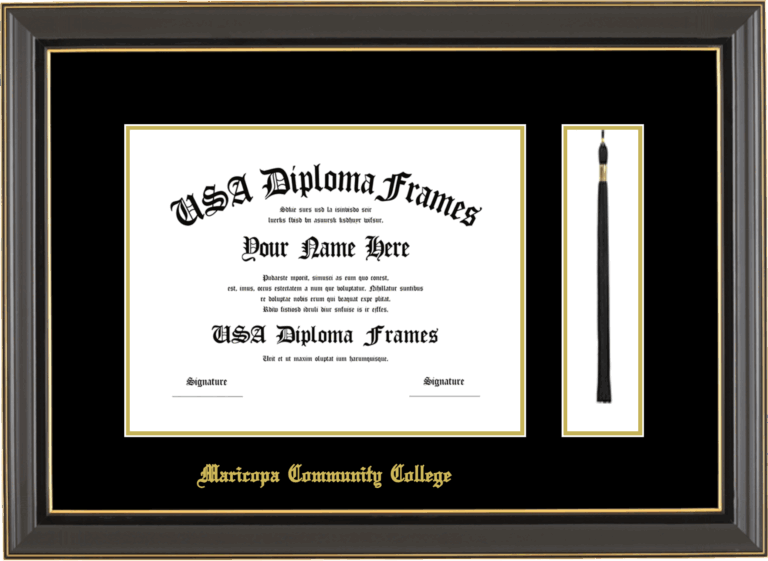 Maricopa County Community College District – Single Horizontal Document ( 8 1/2″x11″ ) – Black Gold Trim Glossy – Black Mat – Gold Accent Mat – With Tassel(Default) – With Gold Embossing (Maricopa Community College)