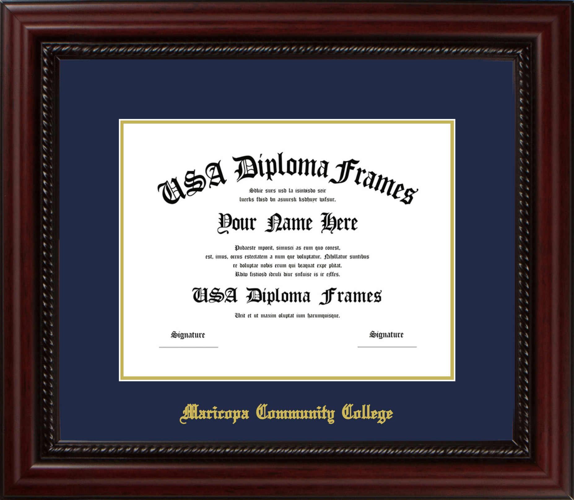 Maricopa County Community College District – Single Horizontal Document ( 8 1/2″x11″ ) – Executive Cherry Rope – Navy Mat – Gold Accent Mat – With Gold Embossing (Maricopa Community College)