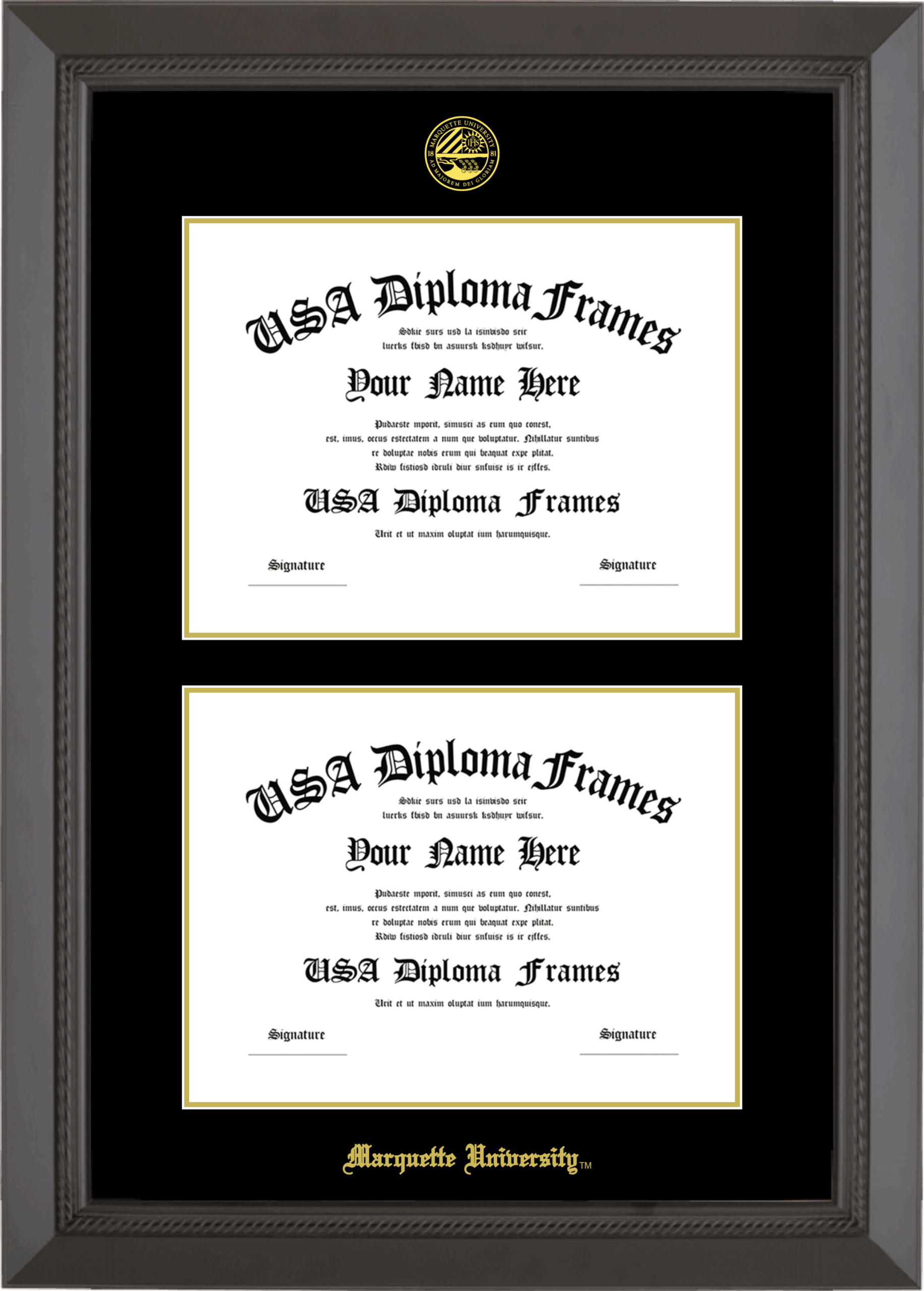 Marquette University Double Diploma Frame – Double Document – Black Rope – Black and Gold Mat