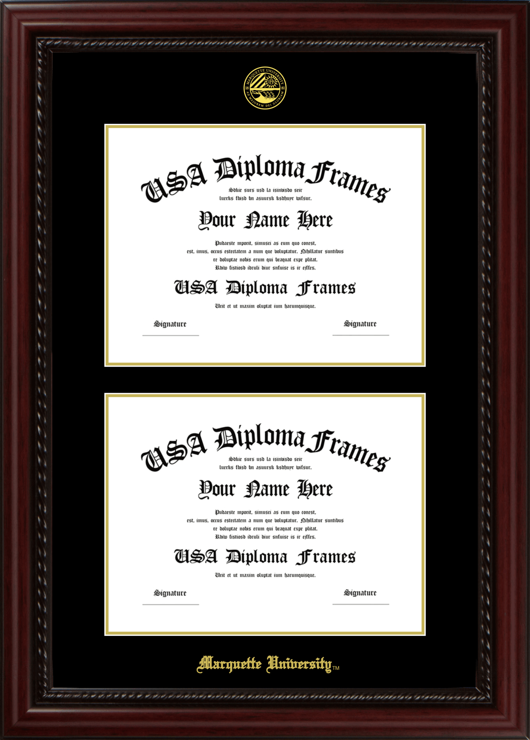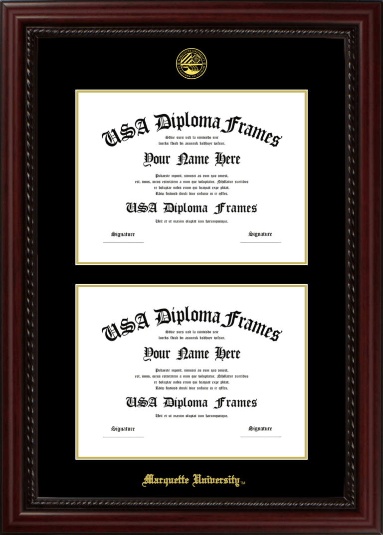 Marquette University Double Diploma Frame – Double Document – Executive Cherry Rope – Black and Gold Mat