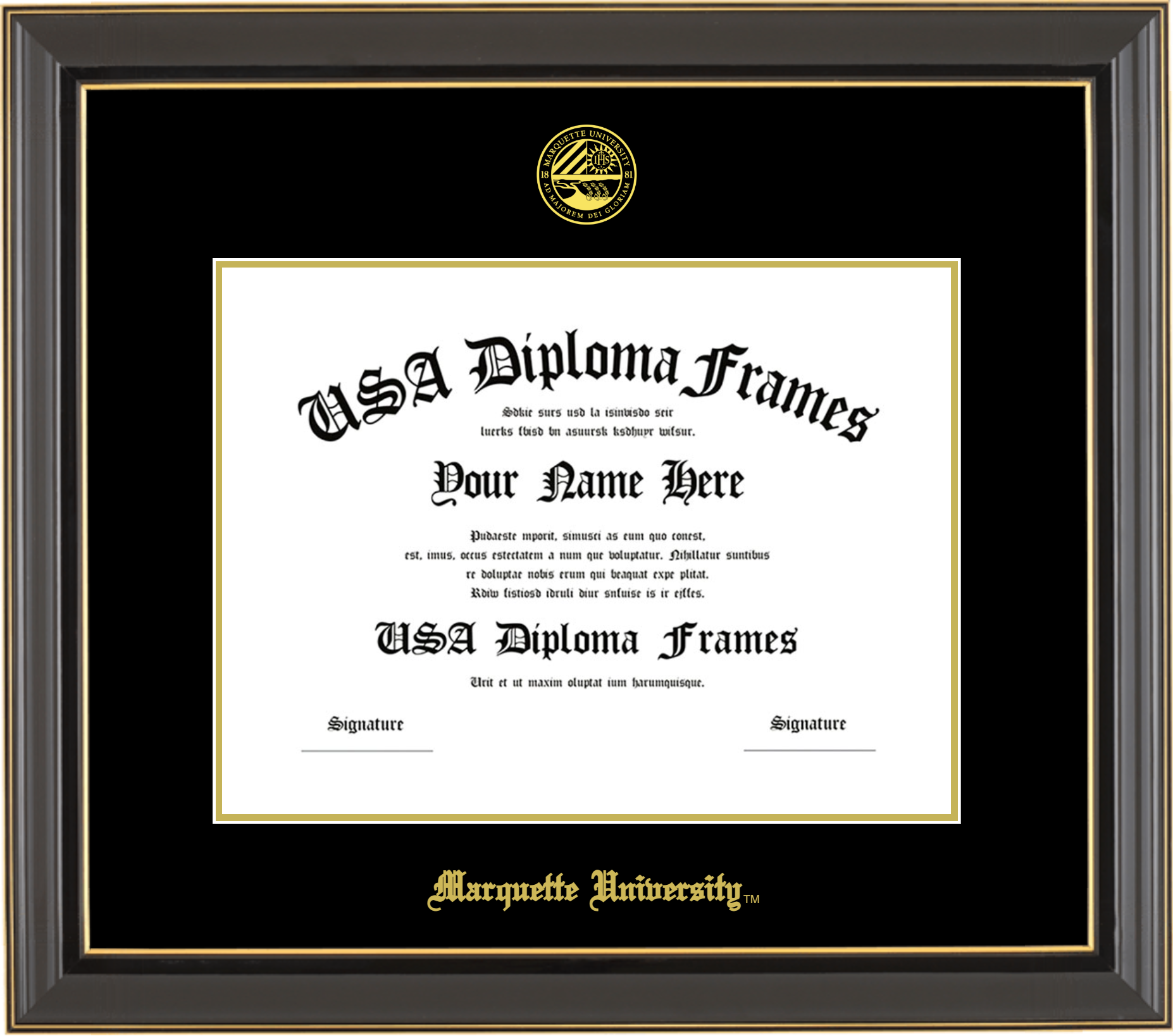 Marquette University Diploma Frame – Black Gold Trim Glossy – Black and Gold Mat