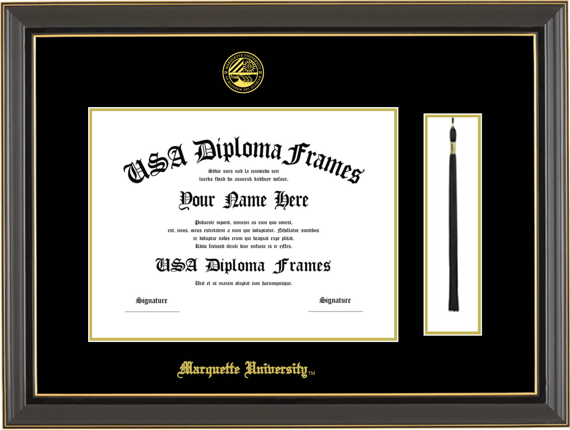 Marquette University Diploma Frame with Tassel – Black Gold Trim Glossy – Black and Gold Mat