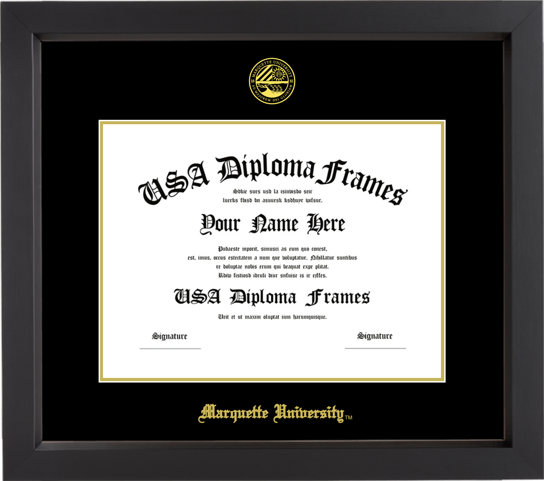 Marquette University Diploma Frame – Black Matte – Black and Gold Mat