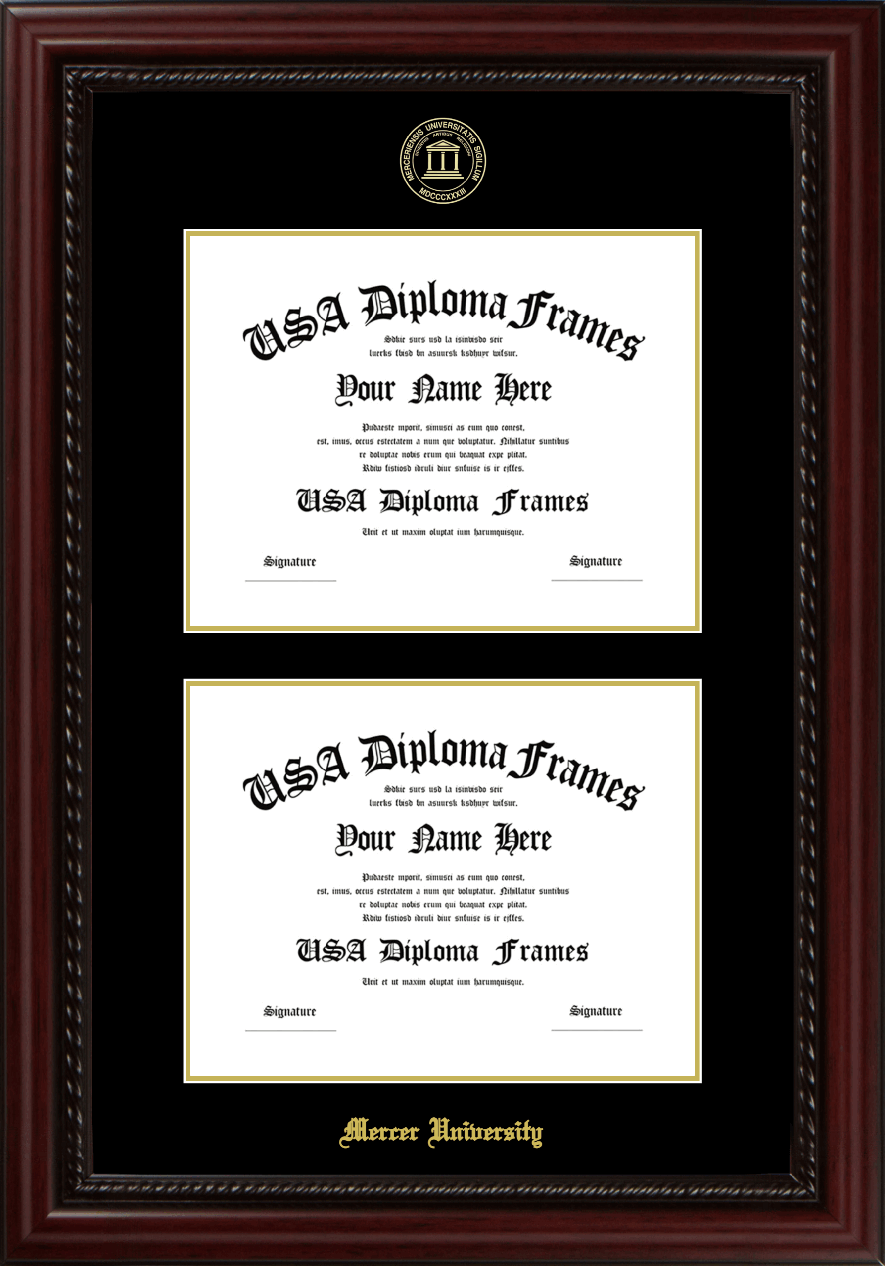 Mercer University Double Diploma Frame – Double Document – Executive Cherry Rope – Black and Gold Mat