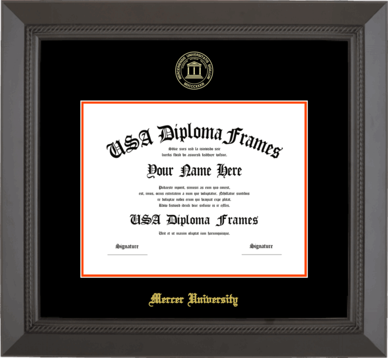Mercer University Diploma Frame – Black Rope – Black and Orange Mat