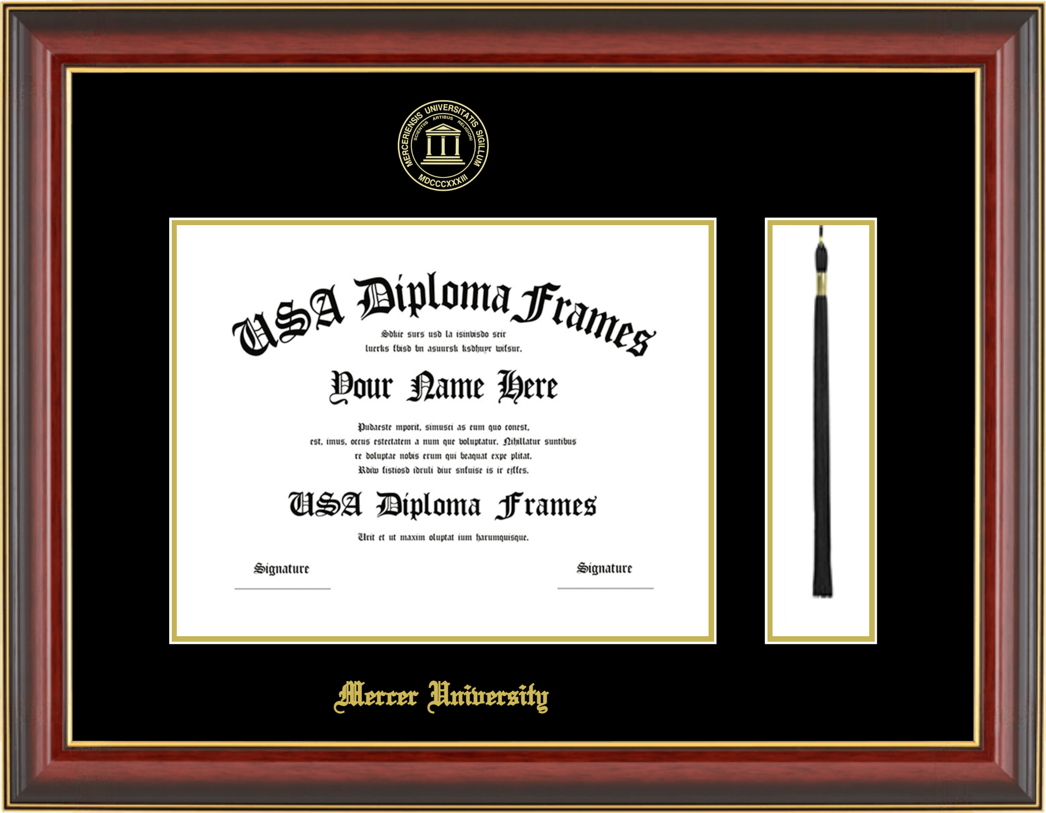 Mercer University Diploma Frame with Tassel – Cherry Mahogany Gold Trim Glossy – Black and Gold Mat
