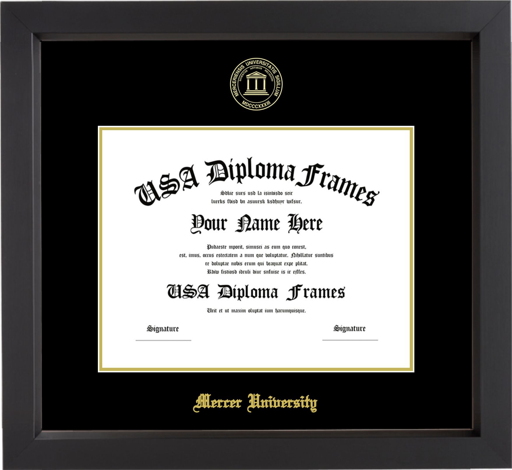 Mercer University Diploma Frame – Black Matte – Black and Gold Mat