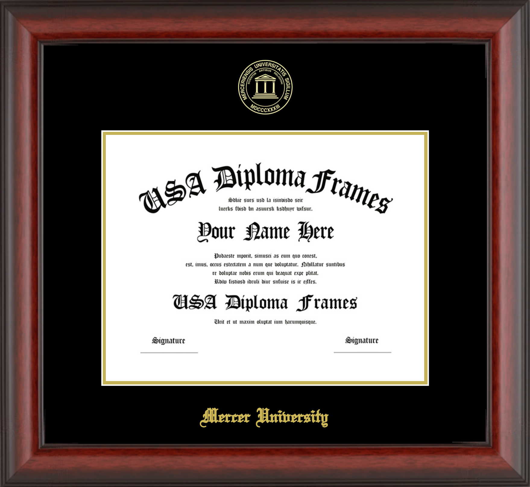 Mercer University Diploma Frame – Cherry Mahogany Matte – Black and Gold Mat
