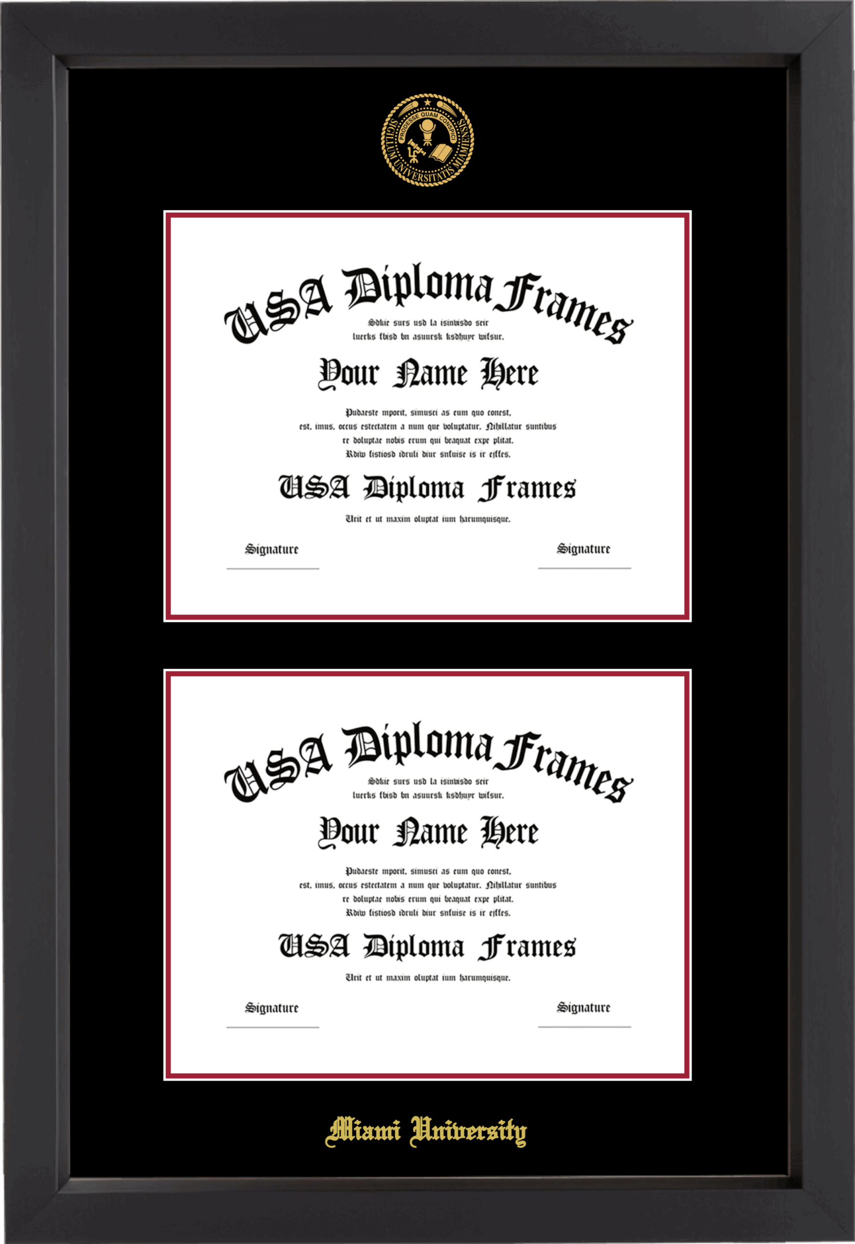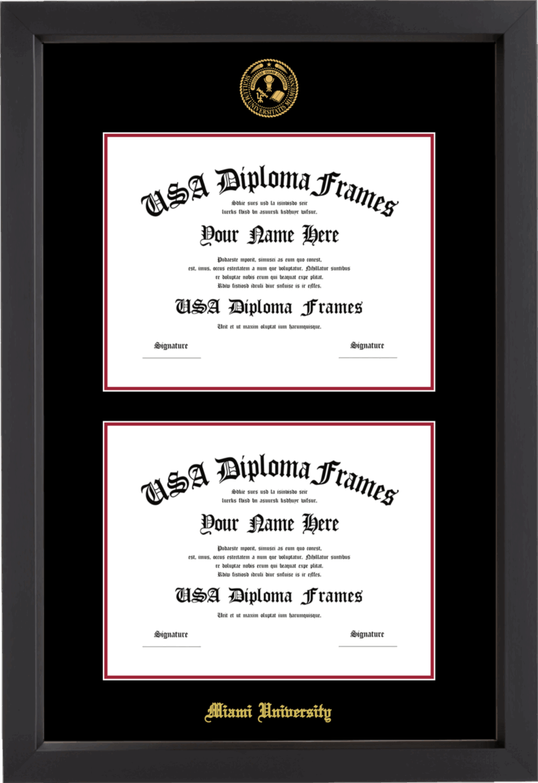 Miami University Ohio Double Diploma Frame – Double Document – Black Matte – Black and Crimson Mat