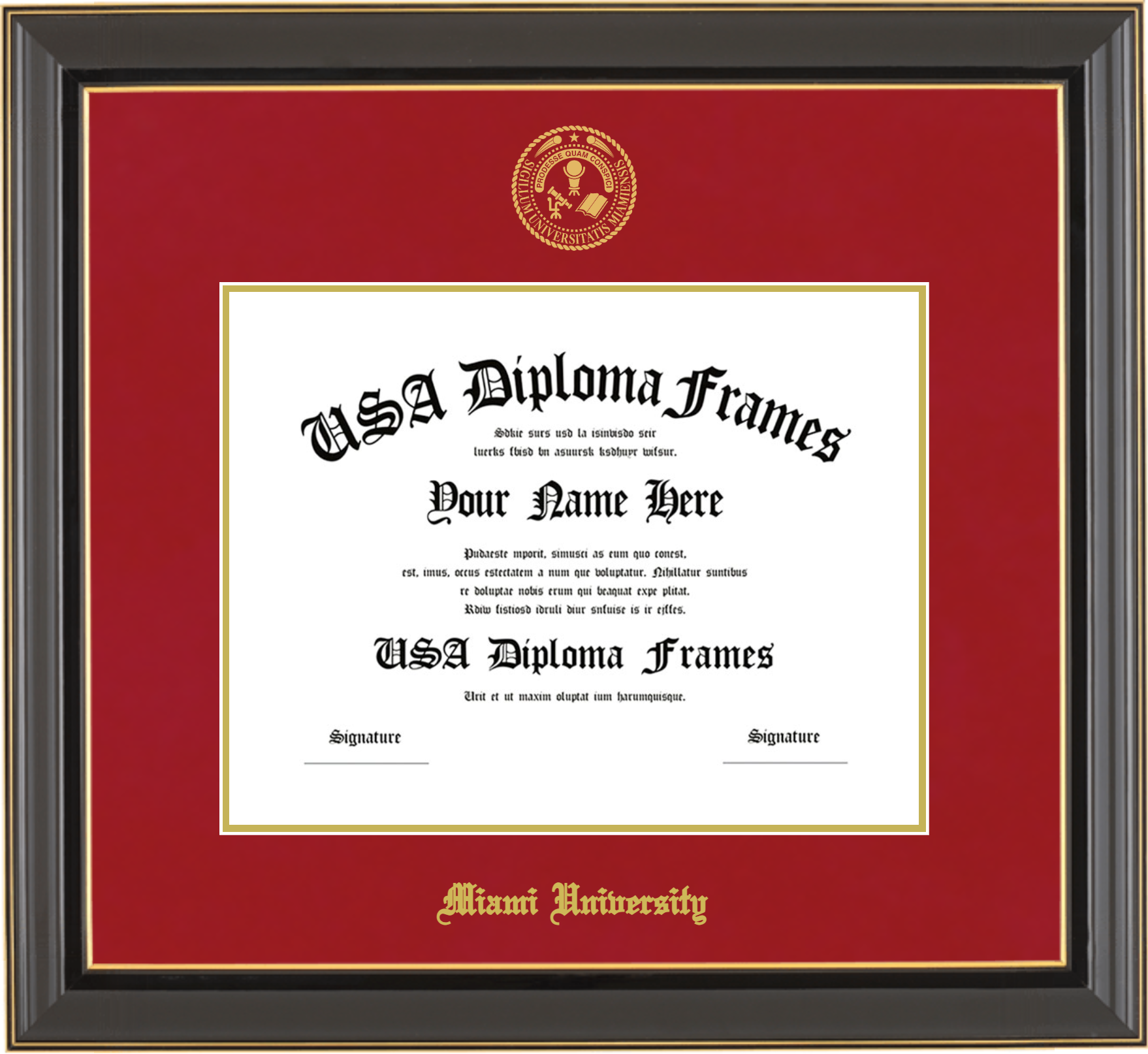 Miami University (OH) – Single Horizontal Document ( Bachelors/Masters ) – Black Gold Trim Glossy – Crimson Mat – Gold Accent Mat – With Seal(University Seal Gold) – With Gold Embossing (Miami University)