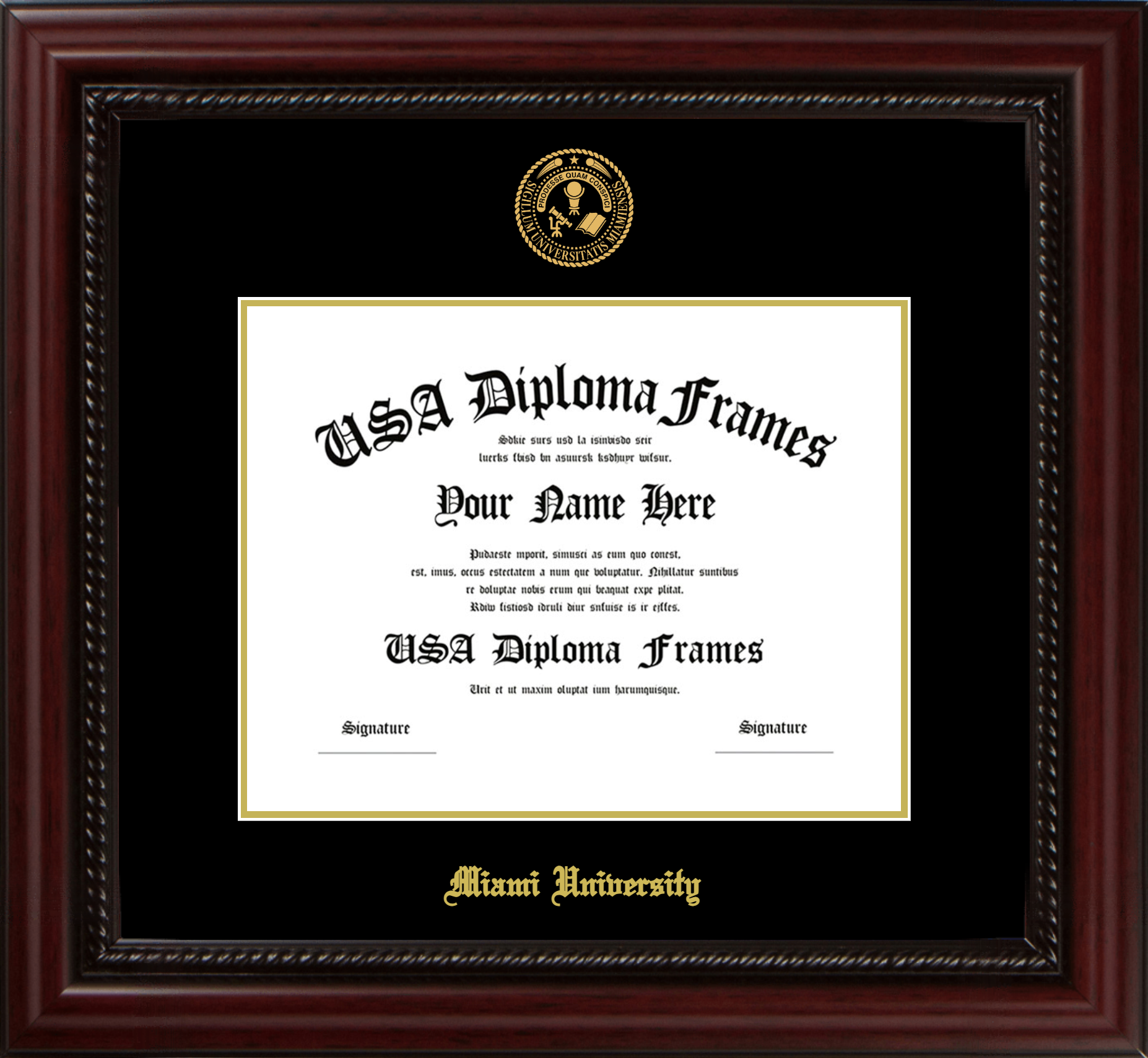 Miami University Diploma Frame – Executive Cherry Rope – Black and Gold Mat – Miami of Ohio
