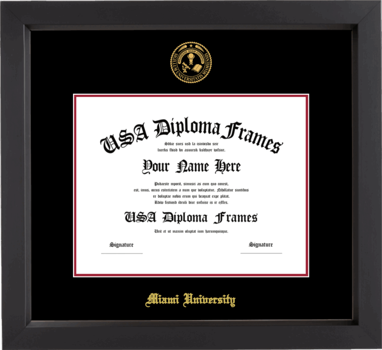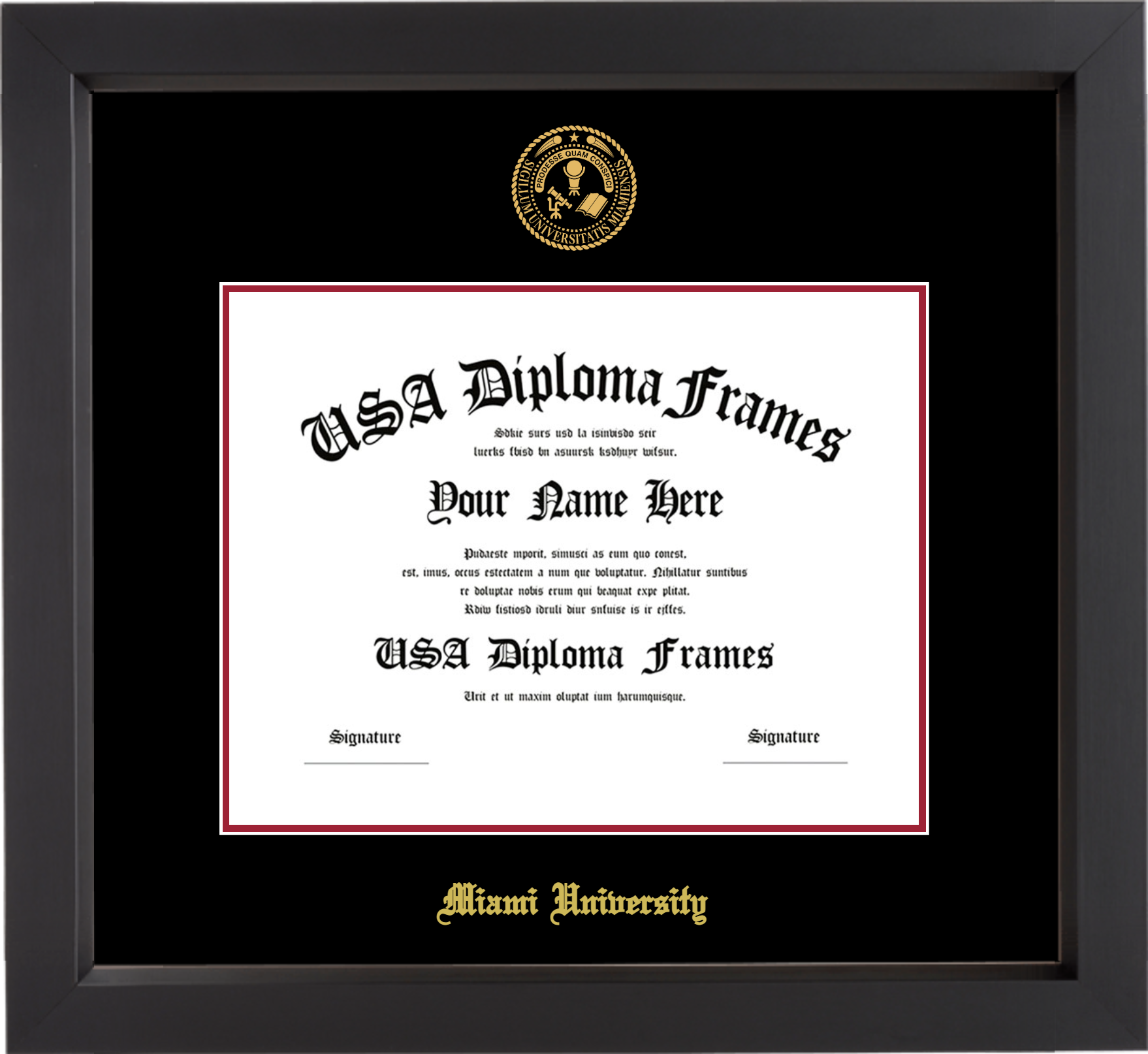 Miami University Diploma Frame – Black Matte – Black and Crimson Mat