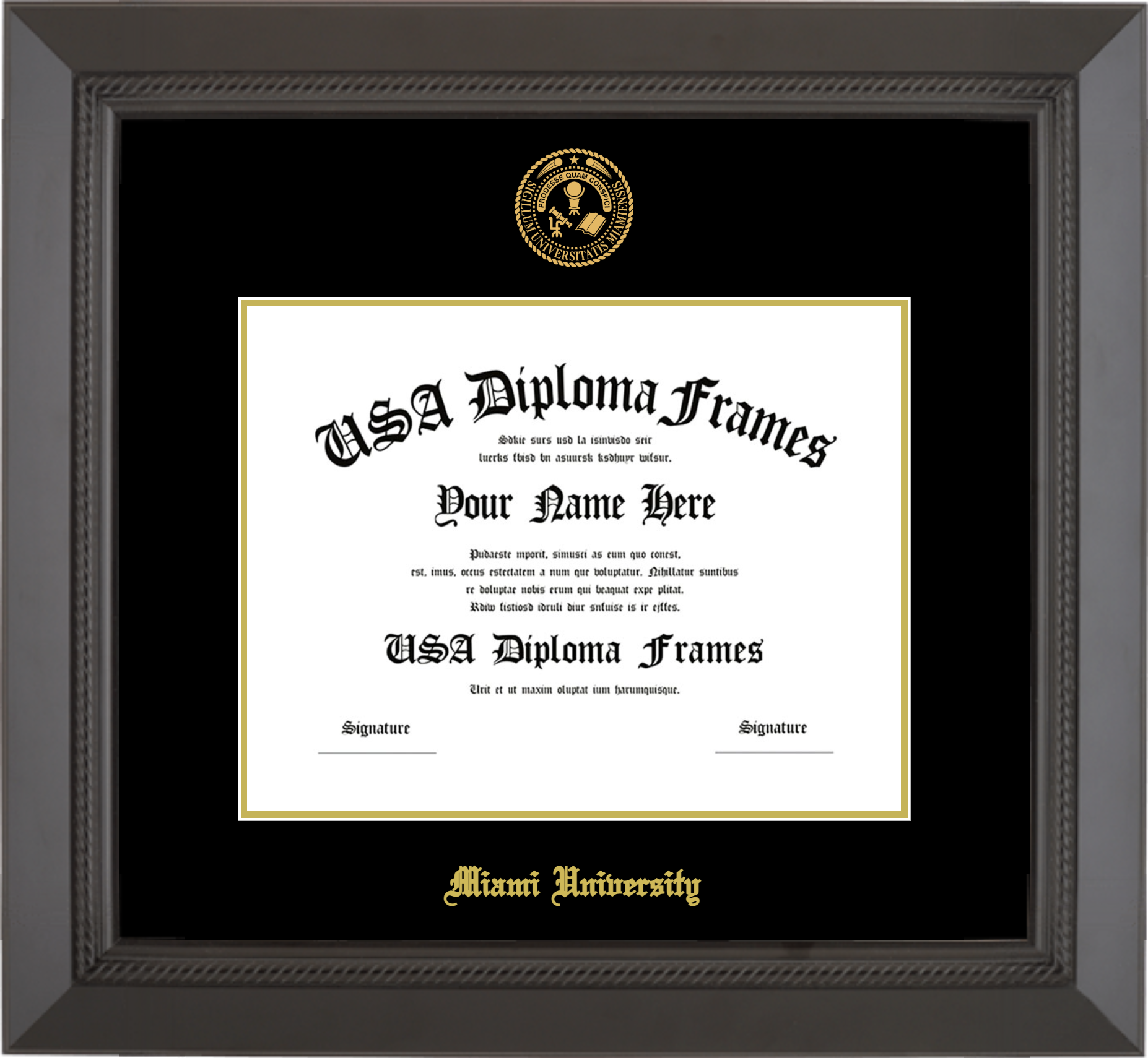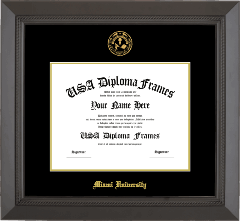 Miami University Diploma Frame – Miami of Ohio Diploma Frame – Black Rope – Black and Gold Mat