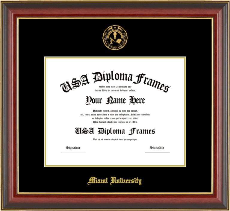 Want to explore more styles? Browse our full range of diploma frame layouts, or visit the Miami University (OH) to view options available for your school. Looking for a fully personalized design? Try our custom Frame Builder and create a frame that’s uniquely yours.