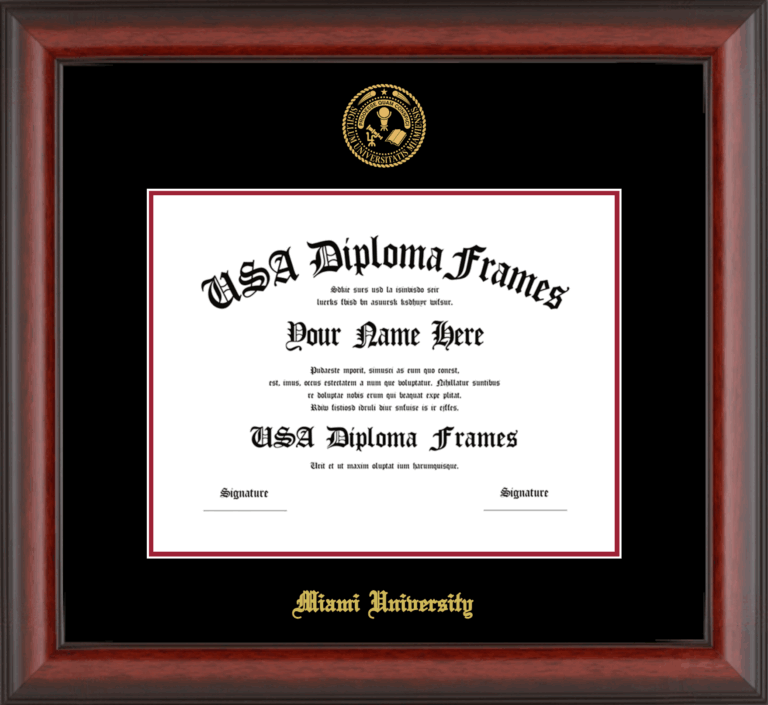 Want to explore more styles? Browse our full range of diploma frame layouts, or visit the Miami University (OH) to view options available for your school. Looking for a fully personalized design? Try our custom Frame Builder and create a frame that’s uniquely yours.